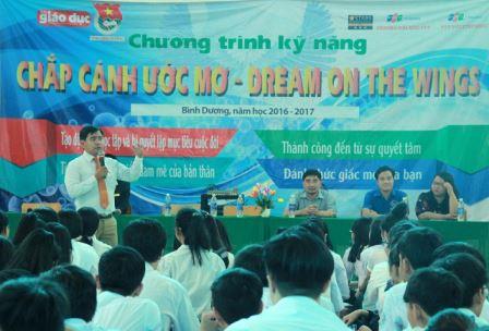 Thực hiện chương trình công tác Đoàn và phong trào thanh niên khối trường học tỉnh Bình Dương năm học 2016 – 2017, hướng dẫn thực hiện phong trào “Khi tôi 18” giai đoạn 2015 – 2020, chuỗi chương trình “Chắp cánh ước mơ – Dream on the wings” được tổ chức nhằm hỗ trợ cho các em học sinh xác định và nuôi dưỡng những ước mơ, khơi dậy niềm đam mê và sự phấn đấu của mình trong quá trình học tập; đồng thời, giúp các em xác lập mục tiêu, hoạch định được tương lai nghề nghiệp cho mình, phát huy tính năng động, sáng tạo của bản thân từ đó có nhận thức đúng đắn đối với việc chọn nghề trong tương lai, chuỗi chương trình được diễn ra từ ngày 28/02 cho đến hết ngày 18/3/2017 với 17 buổi tư vấn được tổ chức ở các trường THPT, TTGDTX trên địa bàn tỉnh