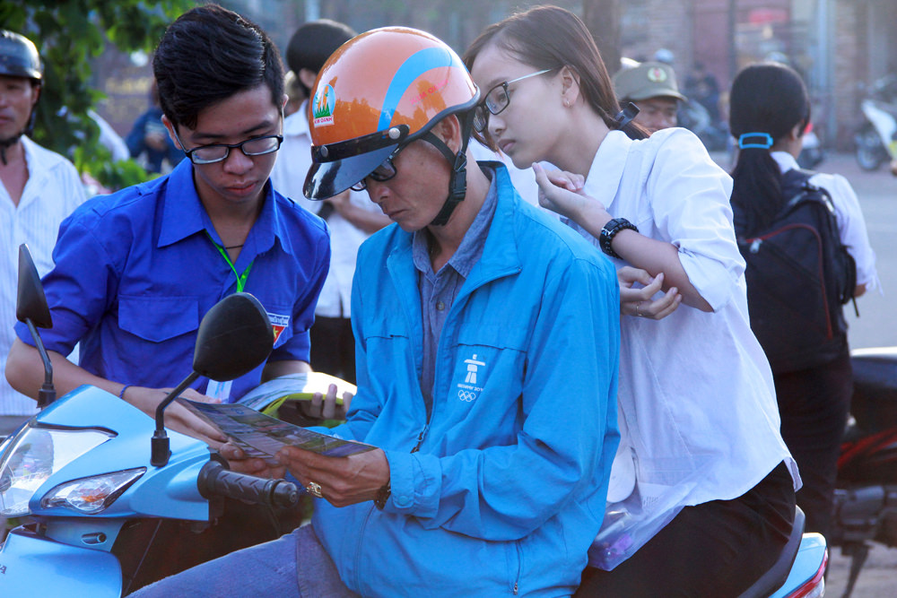 Phát tờ thông tin bổ ích cho phụ huynh và thí sinh tham gia kỳ thi THPT năm 2016