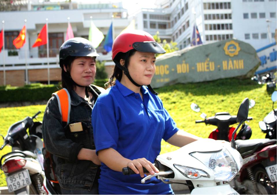 Đội hình xe ôm miễn phí của các bạn sinh viên tình nguyện
