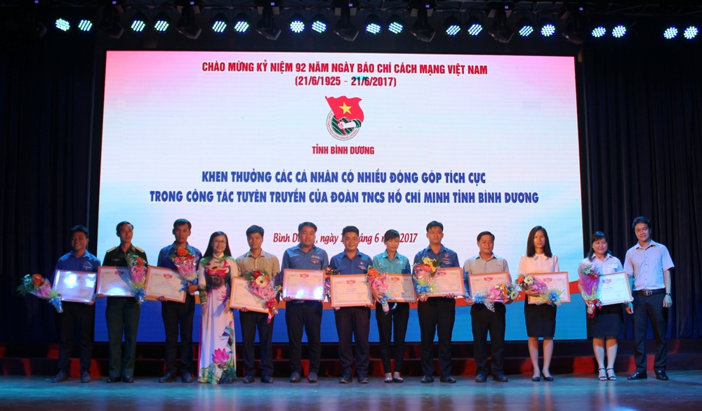 Khen thưởng cho các cá nhân có những đóng góp tích cực trong công tác tuyên truyền của Đoàn TNCS Hồ Chí Minh tỉnh Bình Dương trong năm qua