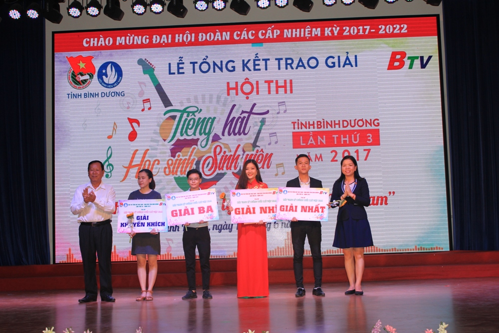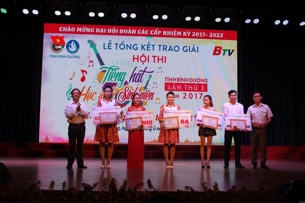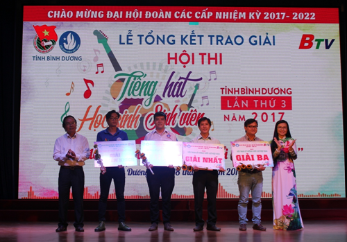 TTBD - Thiết thực lập thành tích chào mừng Đại hội Đoàn các cấp, tiến tới Đại hội đại biểu Đoàn TNCS Hồ Chí Minh tỉnh Bình Dương lần thứ X và Đại hội Đoàn toàn quốc lần thứ XI, nhiệm kỳ 2017 – 2022, tối ngày 18/6/2017 tại Nhà Thiếu Nhi tỉnh,Tỉnh Đoàn, Ban Thư ký Hội Sinh viên Tỉnh tổ chức lễ tổng kết và trao giải Hội thi Tiếng hát Học sinh – Sinh viên tỉnh Bình Dương lần thứ 3 năm 2017 và khen thưởng các cá nhân có nhiều đóng góp tích cực trong công tác tuyên truyền của Đoàn TNCS Hồ Chí Minh giai đoạn 2016 – 2017.