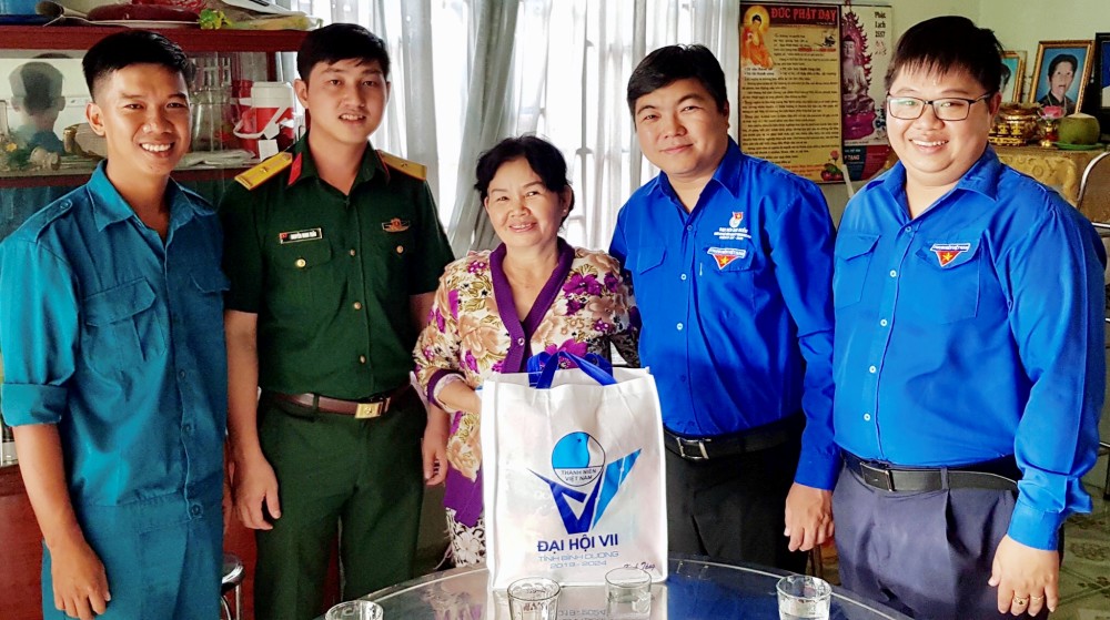 Thường trực Hội LHTN Việt Nam tỉnh thăm và tặng quà cho gia đình chiến sĩ Nguyễn Ngọc Tuyền tại xã Phú An, Thị xã Bến Cát, tỉnh Bình Dương, hiện tại đang công tác trên tàu kiểm ngư KN 464 Vùng 4 Hải Quân 3