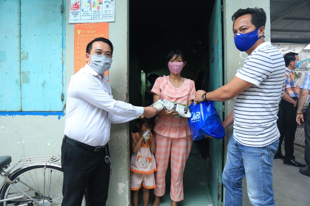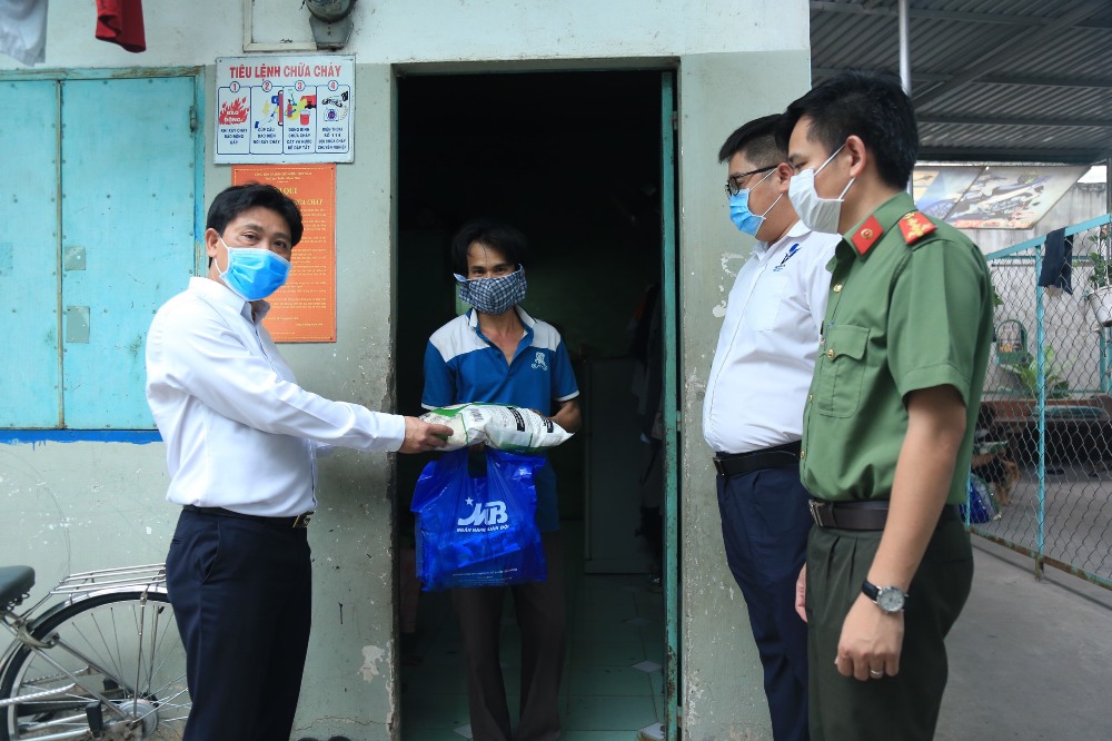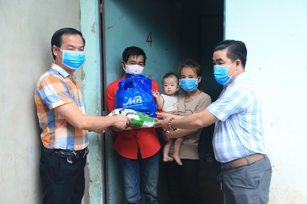 Đoàn cũng đến thăm hỏi, động viên và trao quà trực tiếp cho các gia đình khó khăn, người bán vé số bị mất việc do ảnh hưởng của dịch bệnh Covid-19 đang ở trọ tại phường Phú Lợi, TP. Thủ Dầu Một.