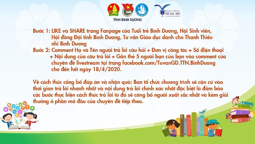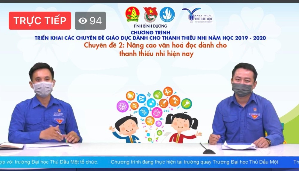 TTBD - Nằm trong chuỗi các hoạt động Hưởng ứng Ngày sách Việt Nam 21/4, Ngày sách và bản quyền thế giới 23/4, tối ngày 15/4, tại trường quay Đại học Thủ Dầu Một, Ban Thường vụ Tỉnh Đoàn, Hội Liên hiệp Thanh niên, Hội Sinh viên, Hội đồng Đội tỉnh Bình Dương đã phối hợp cùng trường Đại học Thủ Dầu Một tổ chức Chương trình livestream trực tuyến với chủ đề “Nâng cao văn hóa đọc dành cho thanh thiếu nhi hiện nay”.