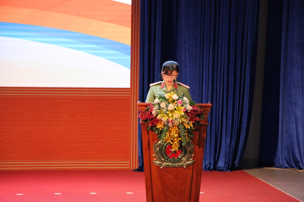 Đ/c Đại tá Trần Văn Chính – Phó Giám đốc Công an tỉnh sẽ lên phát biểu ghi nhận các ý kiến đóng góp và kết luận Hội nghị