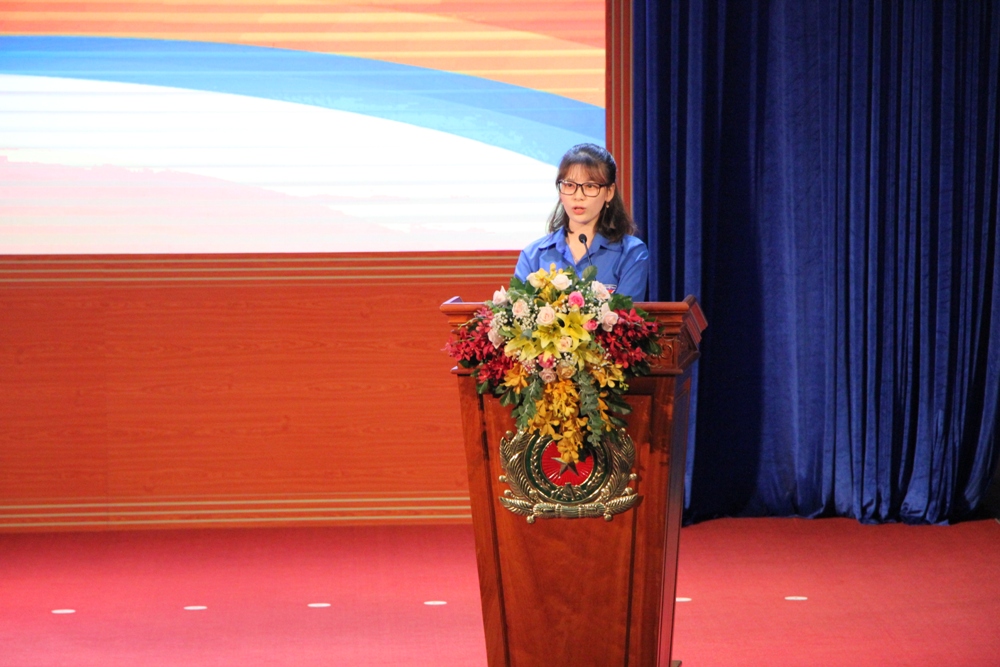 Đồng chí Trần Thị Diễm Trinh - Phó Bí thư Tỉnh Đoàn phát biểu gợi ý thảo luận