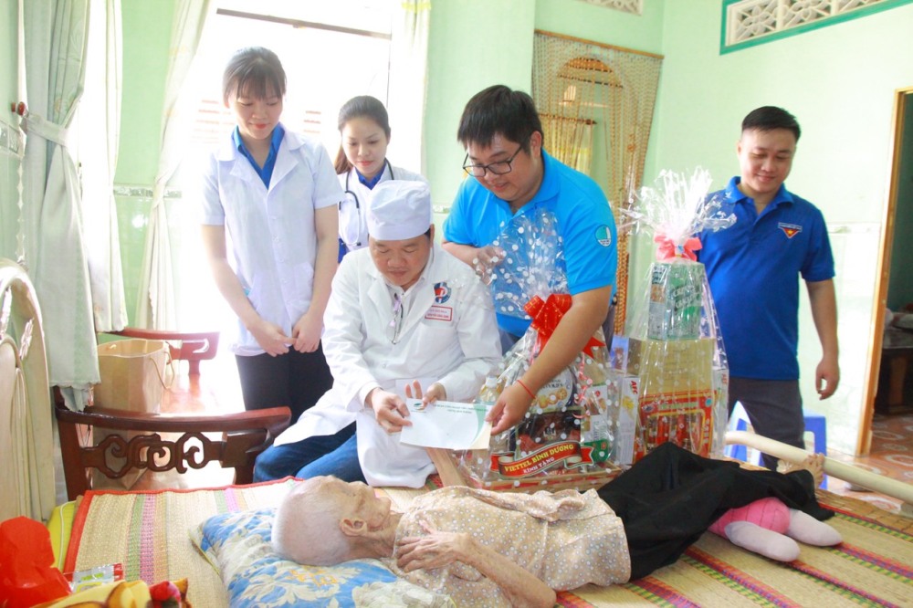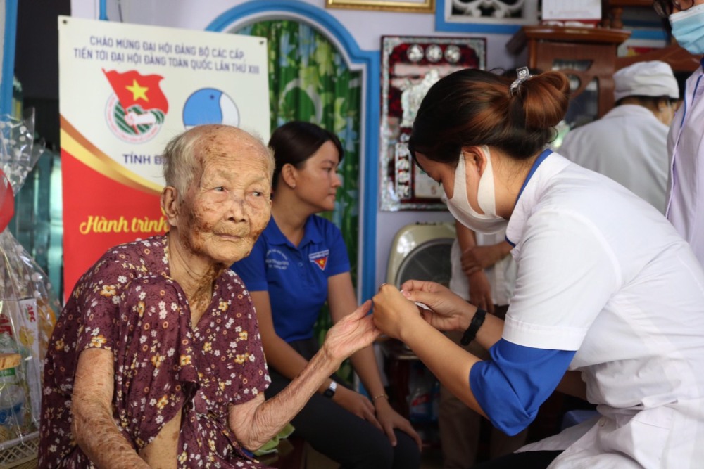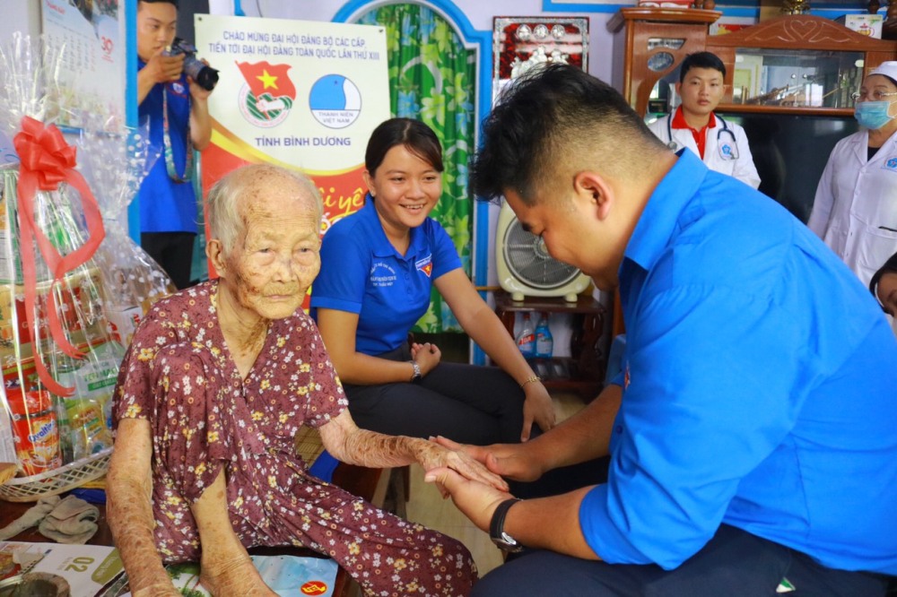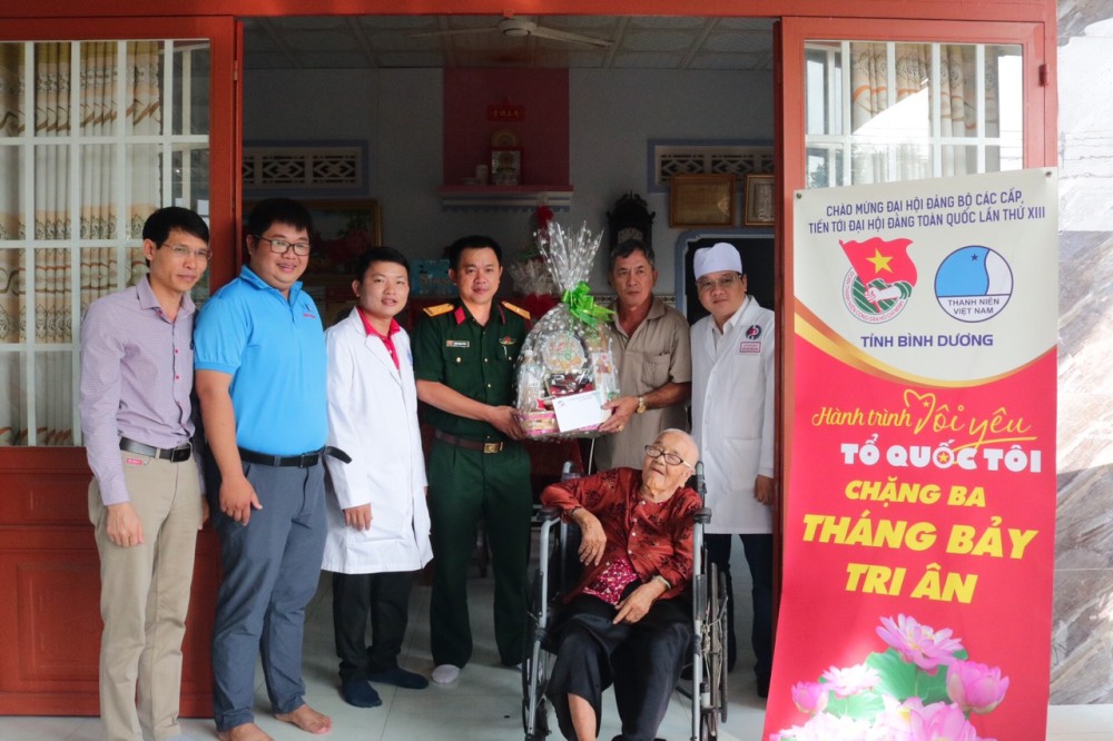 Trong hành trình, Ban Thư ký Hội LHTN tỉnh đã phối hợp với Hội Thầy thuốc trẻ tỉnh, Câu lạc bộ Thầy thuốc trẻ huyện Bàu Bàng đến tặng quà và tiến hành tư vấn, khám mắt, đo điện tim, kiểm tra, sàng lọc tiểu đường cho 06 Mẹ Việt Nam Anh Hùng trên địa bàn thành phố Thủ Dầu Một.