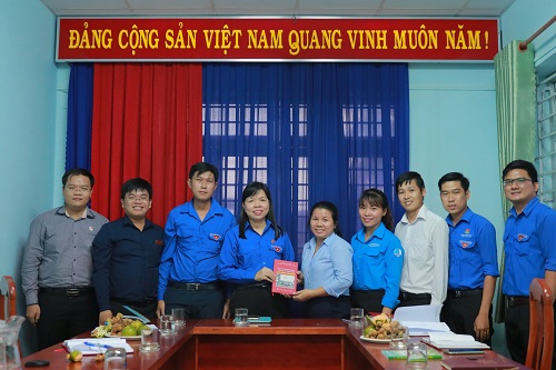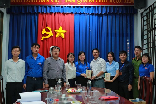 Đoàn công tác tặng quà cho đại diện cấp ủy địa phương và tặng sách cho Đoàn phường An Phú, Bình Chuẩn