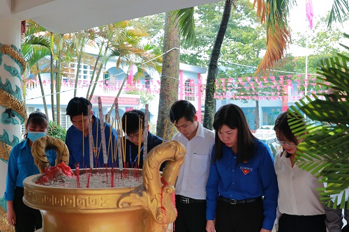 Đoàn công tác thắp hương tại bia tưởng niệm các anh hùng liệt sỹ Phường Bình Chuẩn thành phố Thuận An.