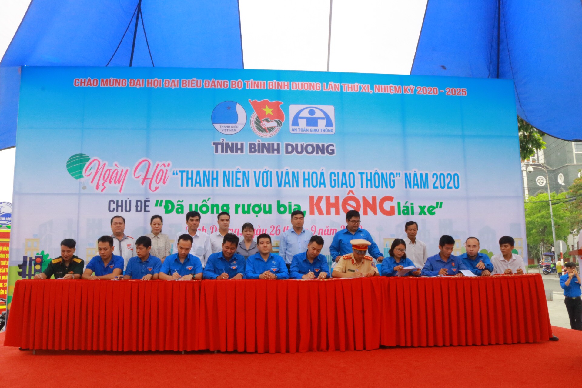 Các hoạt động sôi nổi diễn ra trong chương trình Lễ phát động Tháng An toàn giao thông và Ngày hội Thanh niên với văn hóa giao thông tỉnh Bình Dương năm 2020 gồm: Ký cam kết hưởng ứng của các cấp bộ Đoàn trên địa bàn tỉnh, ra mắt đội hình hỗ trợ trật tự, sơ cấp cứu an toàn giao thông tỉnh, xuất quân đội hình tuyên truyền an toàn giao thông, phối hợp với công ty Head An Thành tổ chức trao tặng 200 phần quà cho các em thiếu nhi và hướng dẫn các hoạt động lái xe an toàn, các trò chơi có thưởng về an toàn giao thông cho đoàn viên thanh niên tham gia, Biểu diễn dân vũ. Trong đợt này, đơn vị Thành đoàn Thành phố Thủ Dầu Một cũng phát động, trao tặng công trình bảng tuyên truyền an toàn giao thông cho 14 Chi hội TNCN nhà trọ trên địa bàn thành phố.