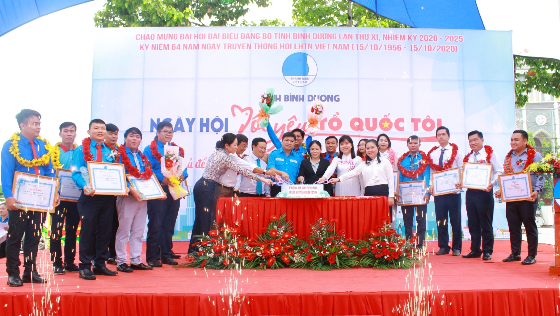 Lãnh đạo và các đại biểu cắt bánh chúc mừng sinh nhật lần thứ 64 của Hội LHTN Việt Nam (15/10/1956 - 15/10/2020)