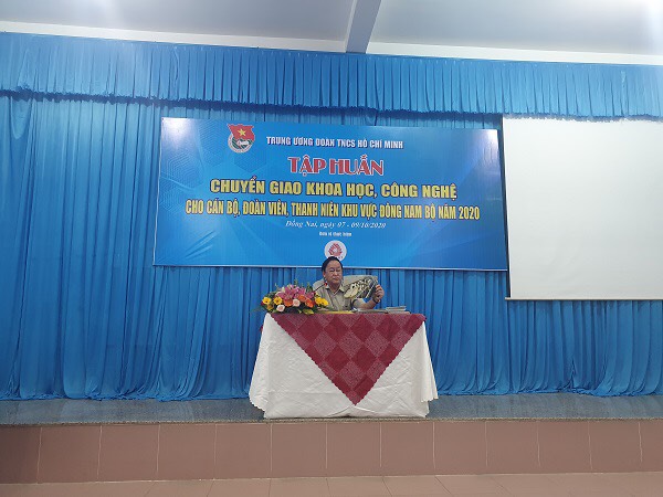 TTBD - Sáng ngày 8/10/2020, Trung tâm Phát triển Khoa học, công nghệ và Tài năng trẻ Trung ương Đoàn tổ chức lớp tập huấn chuyển giao khoa học công nghệ cho hơn 120 cán bộ, đoàn viên, thanh niên các tỉnh Bình Dương, Đồng Nai, Bà Rịa – Vũng Tàu và Thành phồ Hồ Chí Minh thuộc khu vực Đông Nam Bộ, là những đoàn viên thanh niên trực tiếp tham gia sản xuất tại các cơ sở, trang trại, câu lạc bộ, hợp tác xã thanh niên, chủ các mô hình thanh niên phát triển kinh tế.