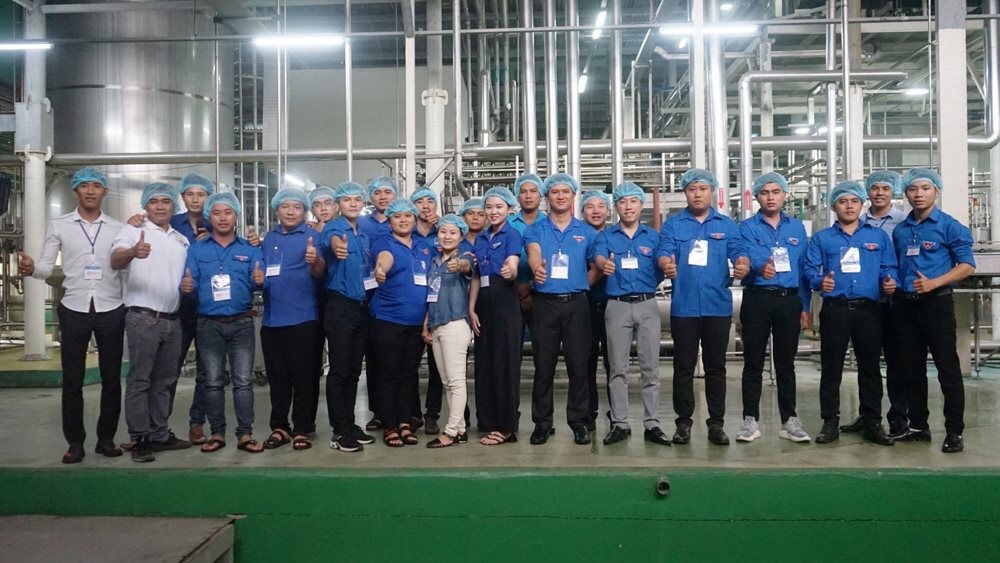 Đến tham quan tại Tập Đoàn, các bạn đoàn viên thanh niên được gặp gỡ và giao lưu cùng Phó Tổng Giám đốc Tập đoàn – Trần Uyên Phương, Giám đốc khối Nghiên cứu & Phát triển – Nguyễn Văn Tư cùng một số đại diện của Tập đoàn. Tại đây, đoàn đại biểu và đại diện Tập đoàn đã có những chia sẻ và trao đổi kinh nghiệm quý báu về quá trình vận hành dây chuyền sản xuất, cách lựa chọn nguyên liệu đầu vào, quy trình tuyển dụng nhân sự tài năng cũng như kiến thức lập nghiệp trong thời đại mới. Tham quan trực tiếp hệ thống dây chuyền công nghệ chiết lạnh vô trùng Aseptic, đây là công nghệ hiện đại được Tập đoàn nhập khẩu từ Đức và được xem như là phát minh của thế kỷ 21 dành cho ngành sản xuất thức uống giải khát, đáp ứng được mọi tiêu chuẩn chất lượng quốc tế dù là khắt khe nhất.