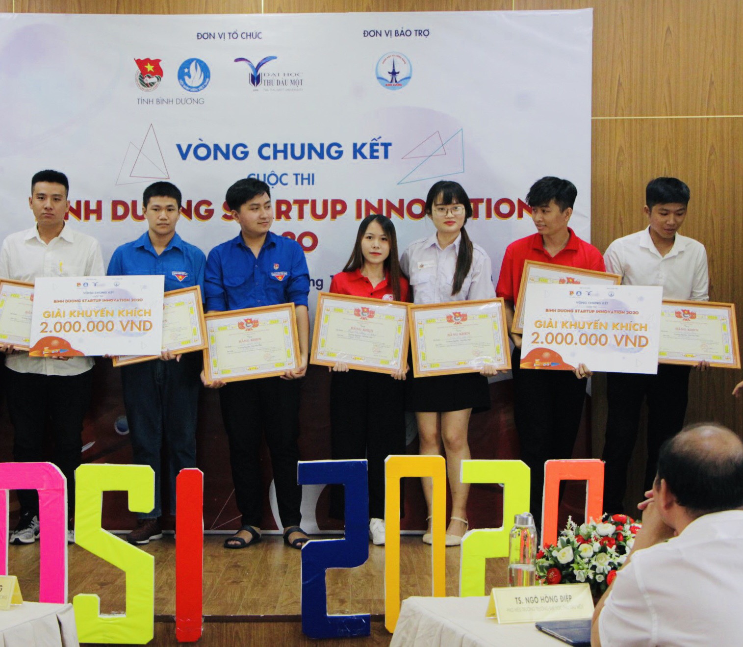 Giải Khuyến khích 4 giải mỗi giải trị giá 15.000.000 đồng bao gồm tiền mặt 2.000.000 đồng và các gói hỗ trợ phát triển đề tài, ý tưởng tại Trung tâm Sáng kiến Cộng đồng và Hỗ trợ khởi nghiệp Tỉnh thuộc về nhóm ý tưởng: Throw Idea, Dung dịch 0 – Hydro, Nhà hàng ẩm thực cuốn Việt Hương và Young to Young đến từ các bạn: Trường Đại học Thủ Dầu Một.
