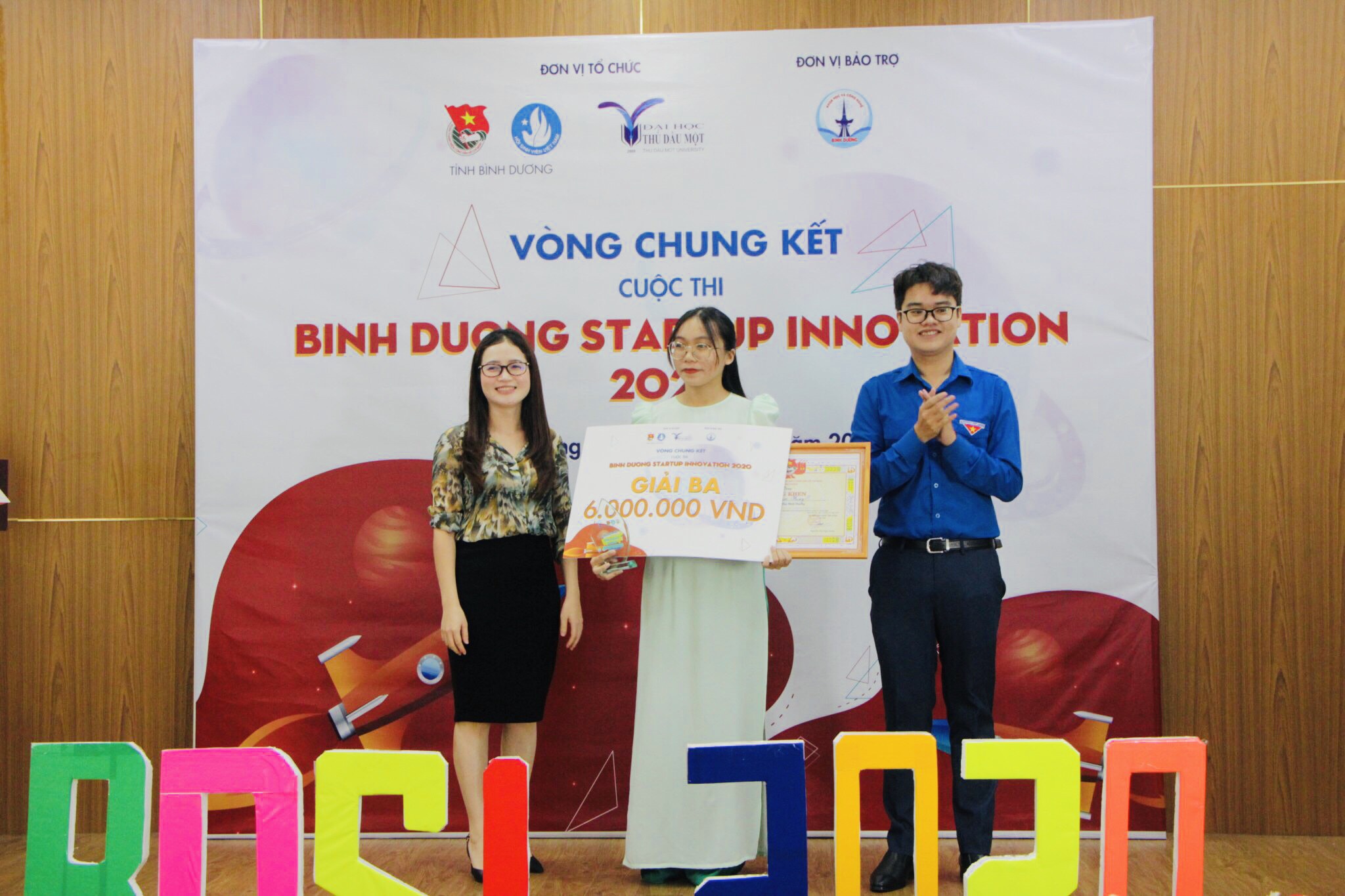 Giải Ba trị giá 30.000.000 đồng bao gồm tiền mặt 6.000.000 đồng và các gói hỗ trợ phát triển đề tài, ý tưởng tại Trung tâm Sáng kiến Cộng đồng và Hỗ trợ khởi nghiệp Tỉnh thuộc về nhóm ý tưởng: Giấm Dừa đến từ bạn: Âu Kim Phụng.
