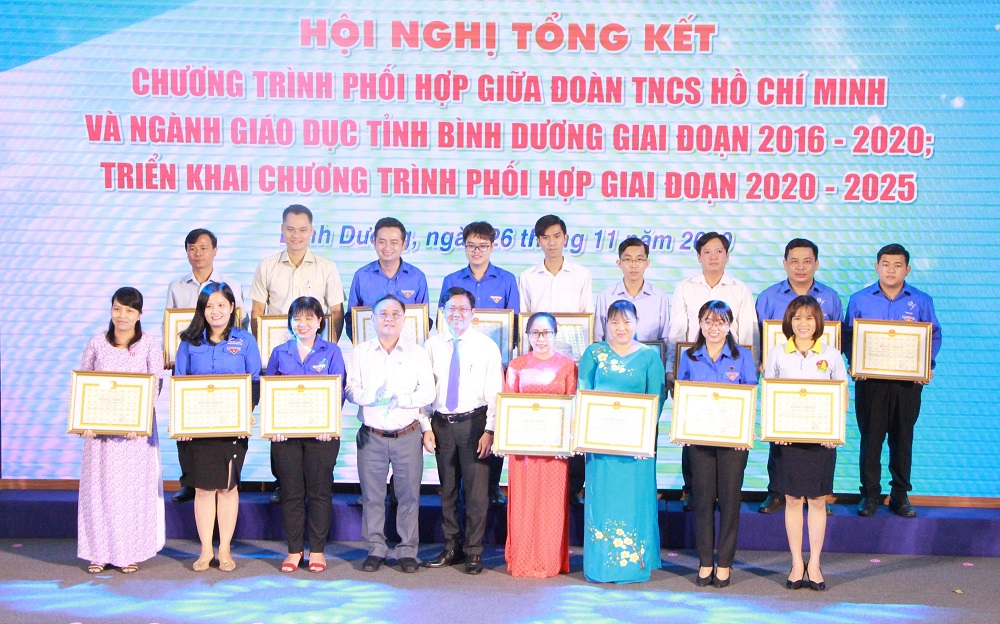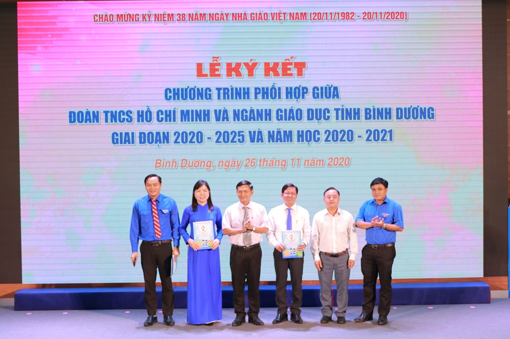 Song song đó, hoạt động tuyên truyền, phổ biến, giáo dục pháp luật trong học sinh, giáo viên trẻ được hai ngành chủ động phối hợp triển khai có hiệu quả trong nhà trường, đặc biệt là pháp luật phòng, chống ma túy và giao thông đường bộ đã được 02 ngành chỉ đạo tổ chức với gần 1000 hoạt động, thu hút được trên 128.000 lượt Đoàn viên, học sinh tham gia. Tiêu biểu, trong giai đoạn 2016 - 2020, Ban Thường vụ Tỉnh Đoàn đã phối hợp tốt với Sở Giáo dục và Đào tạo tổ chức thành công Hội thi An toàn giao thông dành cho học sinh, Hội thi pháp luật phòng, chống ma túy, Liên hoan đội măng non tuyên truyền phòng chống tai nạn thương tích,…Hai ngành đã phối hợp tổ chức Lễ Tuyên dương “Học sinh 3 tốt” cấp tỉnh, cán bộ Đoàn trúng tuyển Cao đẳng, Đại học, Chương trình “Giáo viên, giảng viên trẻ tiêu biểu” cấp Tỉnh hàng năm, tổ chức các buổi “Lễ trưởng thành tuổi 18” cho học sinh các trường trung học phổ thông, trung tâm giáo dục thường xuyên và đề xuất Trung ương trao giải thưởng ”Cánh én hồng”, ”Kim Đồng”, Học sinh 3 tốt” ,“Giáo viên, giảng viên trẻ tiêu biểu” cấp Trung ương cho đội ngũ này. Ban Thường vụ Tỉnh Đoàn đã phối hợp tốt với Sở Giáo dục và Đào tạo tổ chức thành công Lớp bồi dưỡng kỹ năng, nghiệp vụ dành cho giáo viên làm Tổng phụ trách Đội tỉnh Bình Dương; phối hợp tổ chức Hội trại tập huấn Ban Chỉ huy Liên đội, tổ chức 130 chuỗi tuyên truyền phòng, chống xâm hại, tai nạn thương tích, đuối nước trong trẻ em thu hút gần 20.000 lượt em tham gia và triển khai thực hiện tốt chương trình “Rèn luyện đoàn viên”, “Rèn luyện đội viên”, việc trang bị sổ, sách đoàn, đội đến 100% các cơ sở Đoàn, Đội, đoàn viên, đội viên theo quy định trong đầu mỗi năm học.