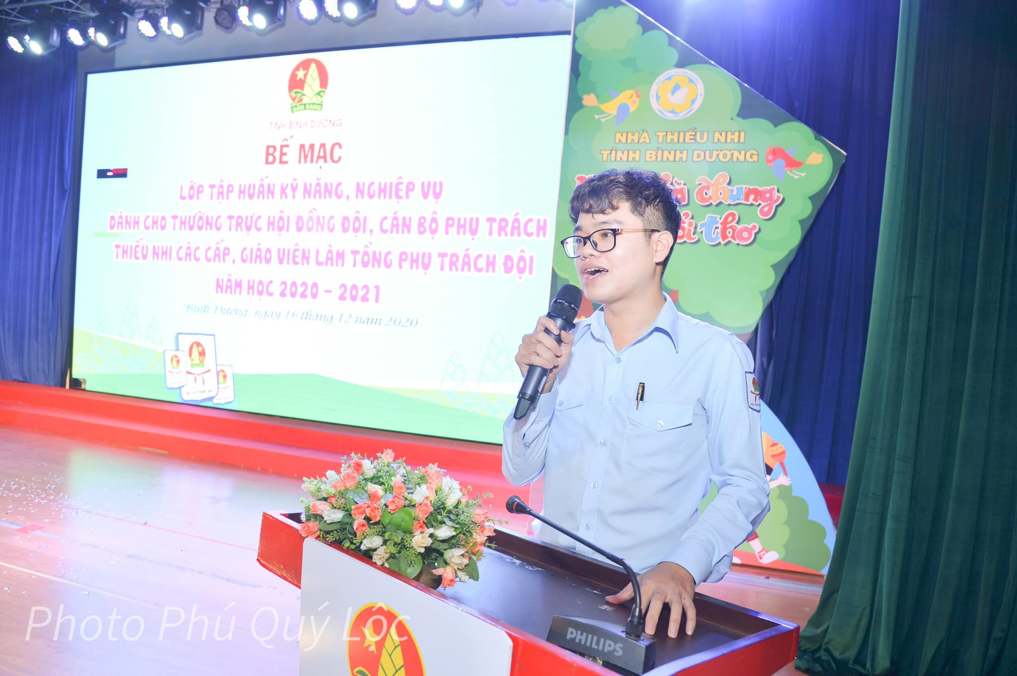 Đồng chí Nguyễn Minh Sơn – UV.BTV, Trưởng Ban Thanh thiếu nhi trường học Tỉnh đoàn, Phó Chủ tịch Thường trực Hội đồng Đội tỉnh báo cáo tổng kết lớp tập huấn