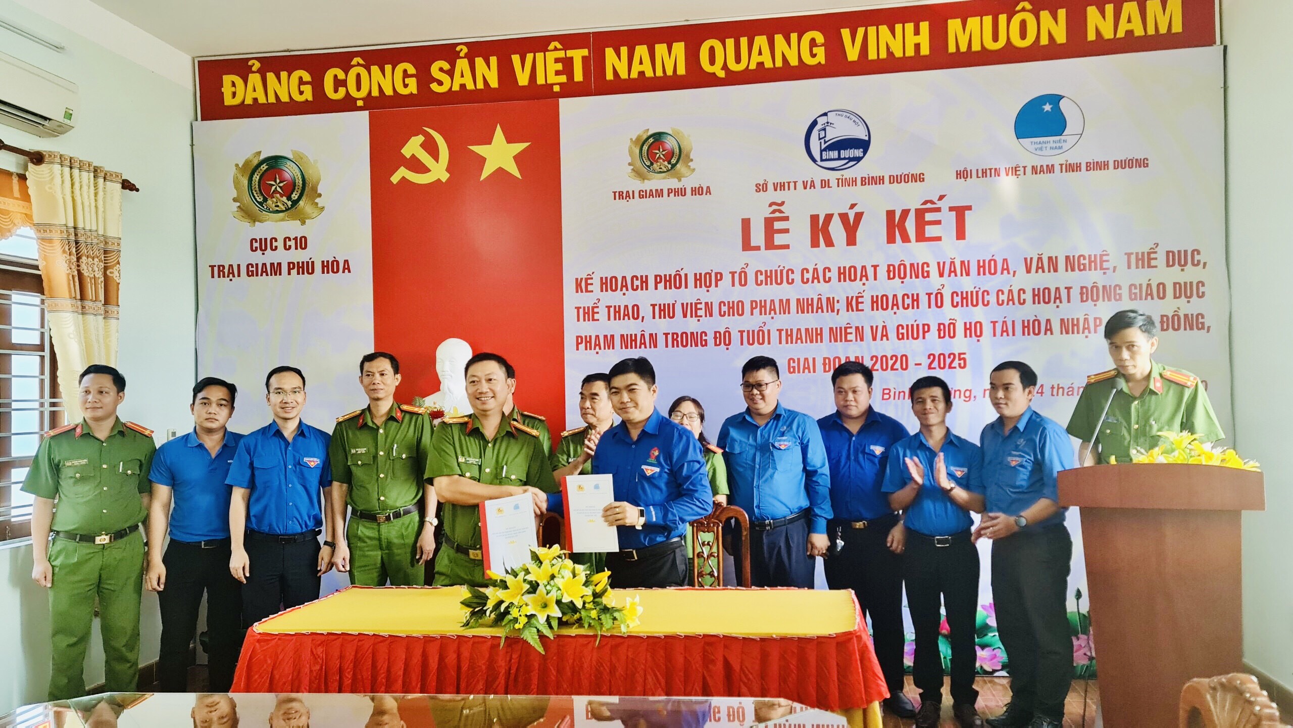 TTBD - Ngày 24/11/2020, Ban Thư ký Hội LHTN Việt Nam tỉnh Bình Dương và Trại giam Phú Hòa đã tổ chức Lễ ký kết Kế hoạch phối hợp tổ chức giáo dục phạm nhân trong độ tuổi thanh niên và giúp đỡ họ tái hòa nhập cộng đồng giai đoạn 2020 - 2025.