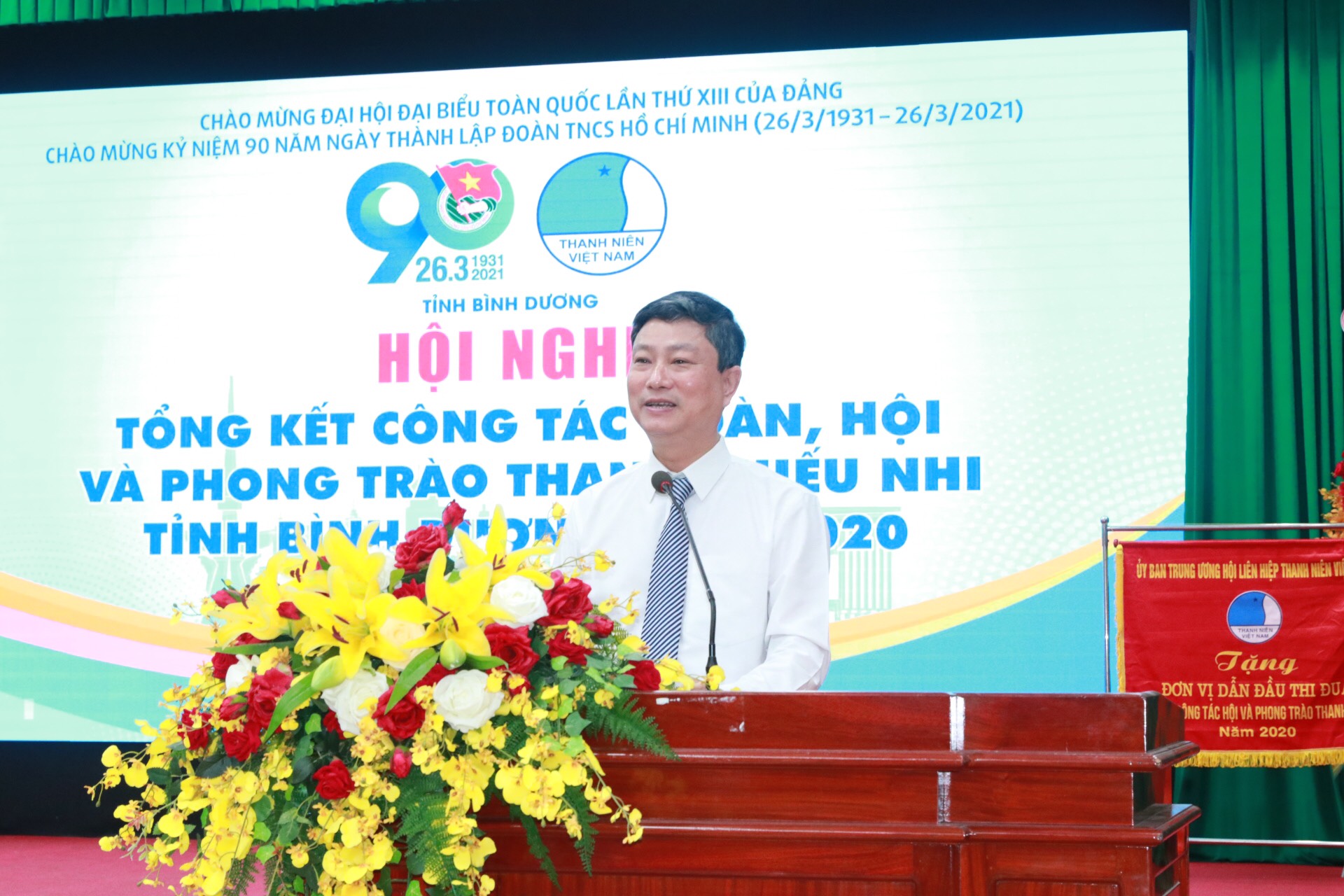 Phát biểu chỉ tại Hội nghị cũng đã được đồng chí Võ Văn Minh – Phó Bí thư Thường trực Tỉnh ủy, Chủ tịch Hội đồng Nhân dân tỉnh biểu dương những nỗ lực, phấn đấu, quyết tâm và những kết quả của đội ngũ cán bộ Đoàn – Hội – Đội, đoàn viên, hội viên, thanh thiếu nhi tỉnh Bình Dương đã đạt được trong năm qua. Năm 2021 là năm đầu tiên thực hiện Nghị quyết Đại hội tỉnh đảng bộ lần thứ XI và Kế hoạch thực hiện phát triển kinh tế xã hội 05 năm 2021 – 2025; kỷ niệm 90 năm Ngày thành lập Đoàn TNCS Hồ Chí Minh; năm diễn ra bầu cử Đại biểu Quốc hội và HĐND các cấp; Triển khai Luật Thanh niên và các văn bản hướng dẫn thi hành mới;... Đây cũng là năm tiền đề để chuẩn bị cho Đại hội Đoàn các cấp sẽ diễn ra vào năm 2022. Để công tác Đoàn và phong trào thanh thiếu nhi tỉnh Bình Dương tiếp tục phát huy những thành quả đã đạt được, đồng chí đề nghị Ban Thường vụ Tỉnh Đoàn, các cấp bộ Đoàn toàn tỉnh phải cụ thể hóa Nghị quyết Đại hội Đảng các cấp vào chương trình công tác Đoàn và phong trào thanh thiếu nhi của đơn vị; chuẩn bị tốt các hoạt động kỷ niệm 90 năm Ngày thành lập Đoàn chủ đáo, ý nghĩa; tích cực tuyên truyền về bầu cử đại biểu Quốc hội khóa XV và bầu cử đại biểu Hội đồng Nhân dân các cấp nhiệm kỳ 2021 - 2026; tiếp tục triển khai thực hiện tốt biện pháp phòng, chống dịch bệnh Covid-19.