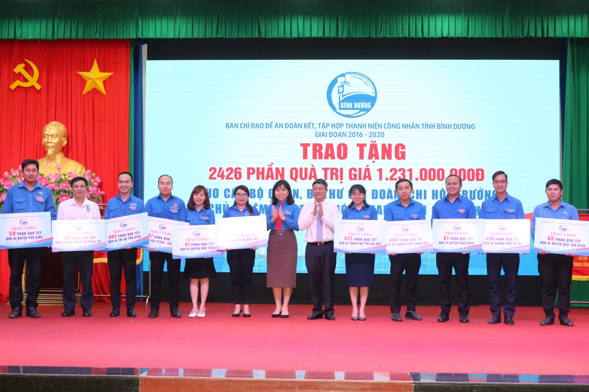 Cụ thể, đã trao tặng cho đơn vị Thành phố Thủ Dầu Một 472 suất, Thành phố Thuận An 494 suất, Thành phố Dĩ An 410 suất, thị xã Bến Cát 334 suất, thị xã Tân Uyên 402 suất, huyện Bàu Bàng 81 suất, huyện Dầu Tiếng 47 suất, huyện Phú Giáo 59 suất, huyện Bắc Tân Uyên 60 suất, Đoàn khối CQ-DN tỉnh 37 suất, Trung tâm hỗ trợ TNCN&LĐT tỉnh 30 suất.