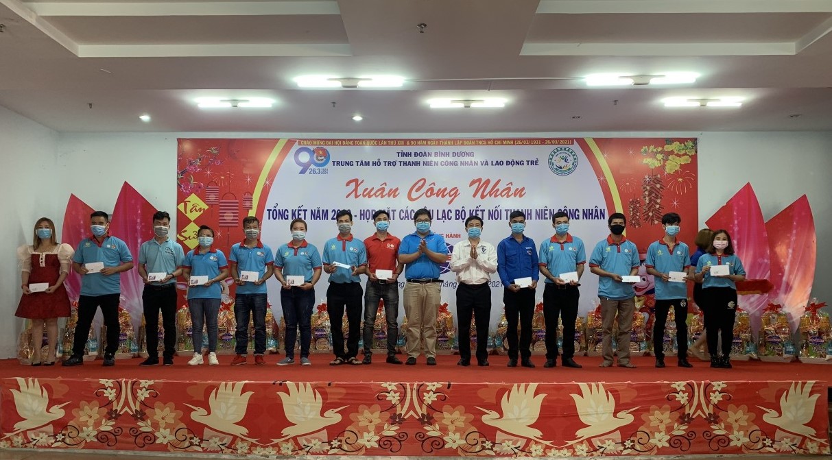 Trung tâm hỗ trợ Thanh niên Công nhân và Lao động trẻ tỉnh Bình Dương trao các suất hỗ trợ cho các anh chị Chủ nhiệm Câu lạc bộ Kết nối Thanh niên công nhân trực thuộc trung tâm