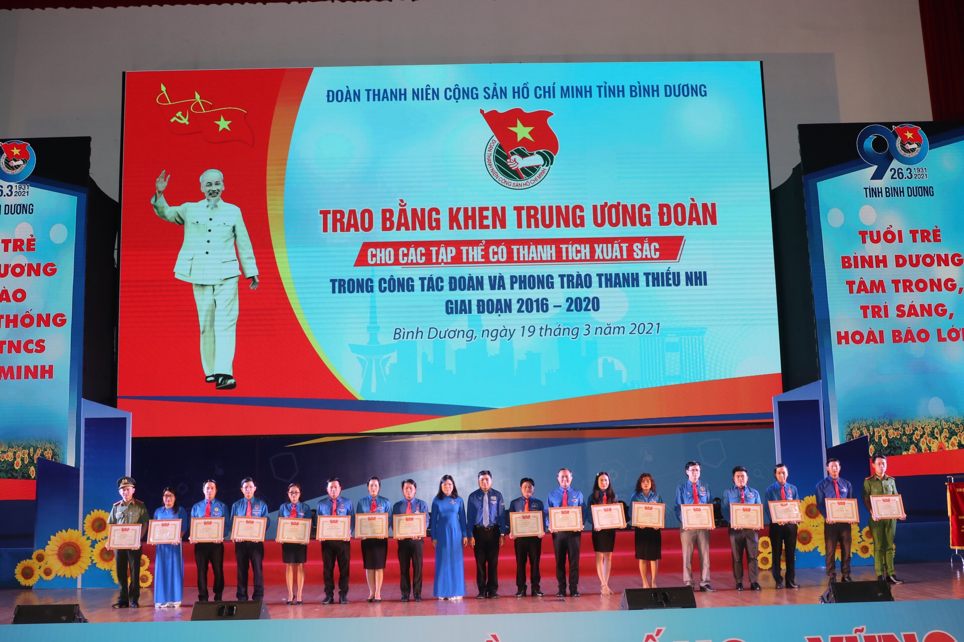 Trao tặng Bằng khen của UBND tỉnh Bình Dương cho 20 tập thể và 40 cá nhân có nhiều đóng góp tích cực trong công tác tổ chức xây dựng Đoàn trong thời gian qua