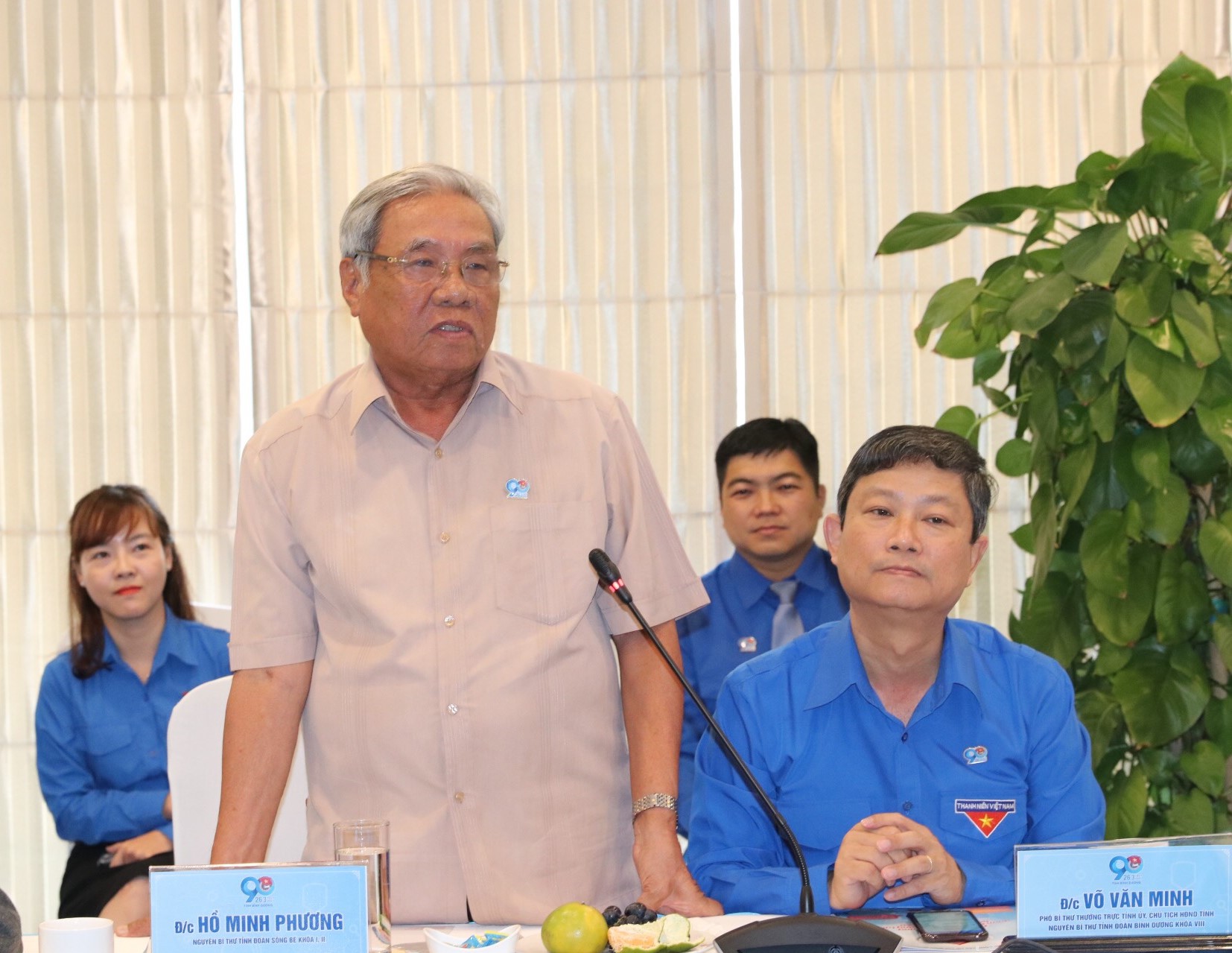 Đồng chí Hồ Minh Phương - Nguyên Phó Bí thư Tỉnh ủy, Nguyên Chủ tịch UBND tỉnh Bình Dương, Nguyên Bí thư Tỉnh Đoàn Sông Bé khóa I, II phát biểu tại chương trình