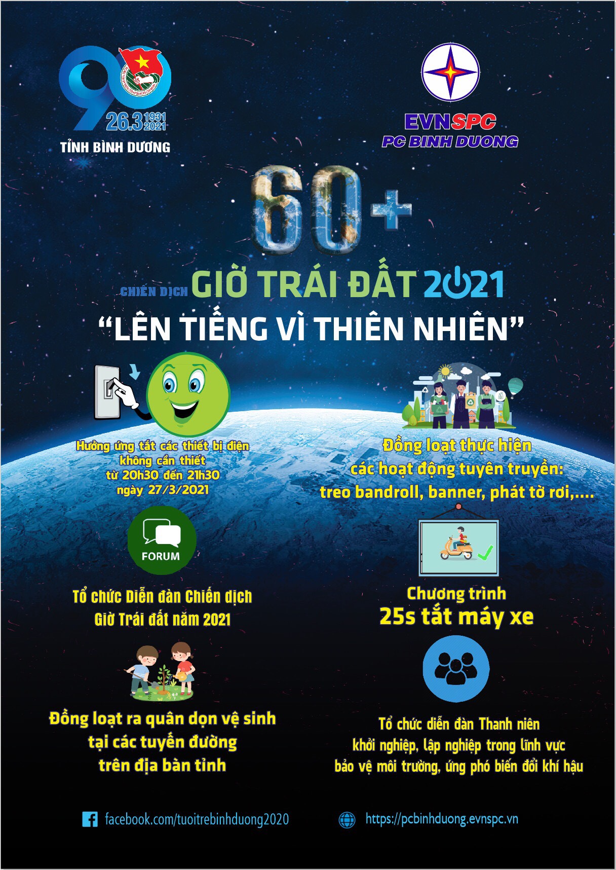 Tuổi trẻ Bình Dương hưởng ứng Chiến dịch Giờ Trái đất năm 2021
