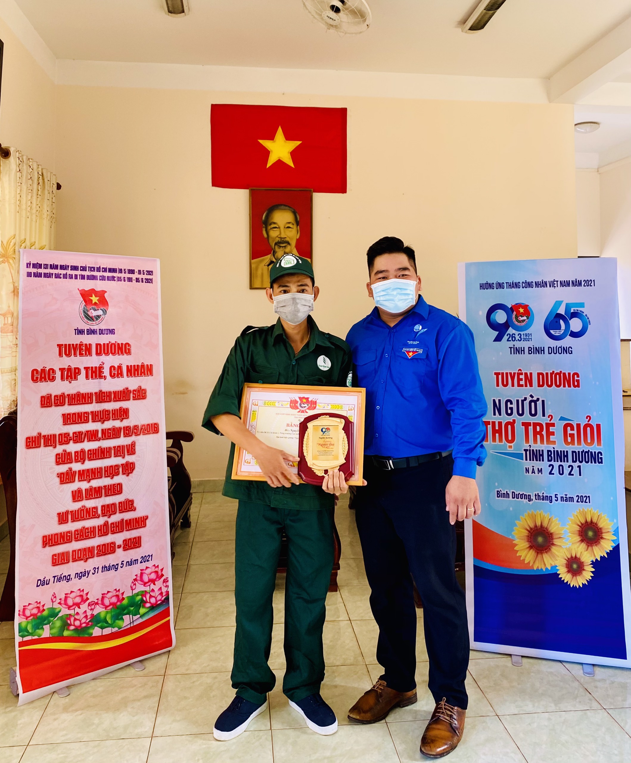 Xét tình hình dịch bệnh diễn biến phức tạp trên địa bàn tỉnh Bình Dương, Ban Thường vụ Tỉnh đoàn đã quyết định thay đổi hình thức tuyên dương bằng cách đi đến từng cơ sở, đơn vị để trao tuyên dương gương Người thợ trẻ giỏi tỉnh Bình Dương năm 2021. Trong tháng 5 vừa qua, Ban Thường vụ Tỉnh đoàn, Hội LHTN Việt Nam tỉnh Bình Dương thành lập các Đoàn công tác đến từng Huyện, Thị, Thành Đoàn và Đoàn trực thuộc thăm và trao gương “Người thợ trẻ giỏi” tỉnh Bình Dương.