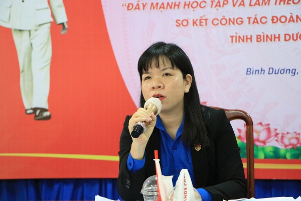 Phát biểu kết luận tại Hội nghị, đ/c Nguyễn Thị Ngọc Xuân - UVBTV Trung ương Đoàn, Tỉnh ủy viên, Bí thư Tỉnh Đoàn, thay mặt Ban Thường vụ Tỉnh Đoàn nghiêm túc tiếp thu đầy đủ những phát biểu định hướng sâu sắc từ đồng chí Bùi Hữu Toàn - Phó Trưởng Ban thường trực Ban Tuyên giáo Tỉnh ủy để cụ thể hóa việc lãnh chỉ đạo toàn Đoàn trong việc học tập và làm theo tư tưởng, đạo đức, phong cách Hồ Chí Minh thời gian tới và trân trọng cảm ơn toàn Đoàn trong 5 năm qua đã nỗ lực trong thực hiện Chỉ thị 05-CT/TW, góp phần xây dựng hình ảnh người cán bộ Đoàn năng động, sáng tạo, xung kích. Đồng chí đề nghị trong thời gian tới, toàn Đoàn cần tập trung tiếp tục thực hiện một số nội dung như sau: Rà soát lại công tác lãnh chỉ đạo của Ban Thường vụ Đoàn các cấp về việc tập trung nội dung học tập và làm theo Bác, rà soát theo kế hoạch năm, kế hoạch giai đoạn, kiểm tra, giám sát, nâng chất việc triển khai các mô hình điểm, mô hình hay đến các khối đối tượng và hiệu quả. Cần đổi mới mạnh mẽ nội dung, phương thức học tập, tuyên truyền về tư tưởng, đạo đức, phong cách của Bác thông qua các hội thi, hội diễn, tọa đàm, sinh hoạt chủ điểm, sinh hoạt toàn Đoàn, gắn với chuyên môn, nghiệp vụ tại cơ quan, đơn vị, về tài liệu, đội ngũ báo cáo viên, tuyên truyền viên học tập và làm theo lời Bác để việc học tập và làm theo Bác "thấm sâu vào tim óc mới là quan trọng". Cần có những giải pháp khơi dậy mạnh mẽ khát vọng thanh niên Bình Dương thời kỳ mới chính là khát vọng dám dấn thân, cống hiến dành những điều tốt đẹp nhất cho đoàn viên, thanh thiếu nhi, chính như vậy đã là làm theo lời Bác gắn với tuyên dương, nhân rộng điển hình tiên tiến, gương cháu ngoan Bác Hồ, điển hình tiên tiến tại các cấp.