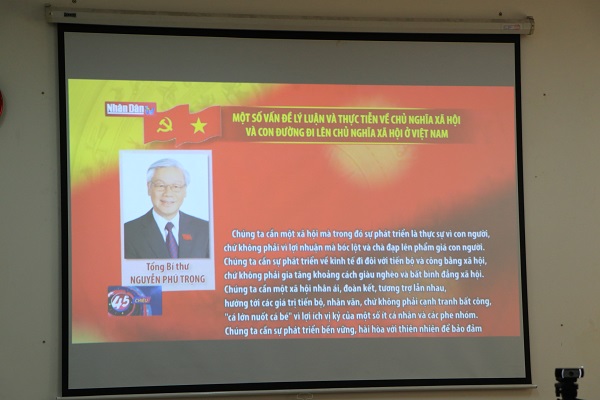 Lịch sử đã chứng minh các vị lãnh tụ của Đảng, các đồng chí Tổng Bí thư Đảng Cộng sản Việt Nam đều là những nhà lý luận rất xuất sắc, đều là những nhà hoạt động thực tiễn rất phong phú, luôn có những bài viết, bài báo sất sâu sắc. Và tại chương trình, được tìm hiểu Bài Báo Dân Vận của Chủ tịch Hồ Chí Minh; xem đoạn phóng sự đặc biệt được sinh hoạt để tìm hiểu kỹ hơn về bài viết “Một số vấn đề lý luận và thực tiễn về chủ nghĩa xã hội và con đường đi lên chủ nghĩa xã hội ở Việt Nam” của Tổng Bí thư Nguyễn Phú Trọng, để mỗi cán bộ Đoàn, mỗi ĐVTN của Bình Dương một lần nữa khẳng định sự kiên định, tin tưởng vào sự lãnh đạo của Đảng Cộng sản Việt Nam và con đường đi lên CNXH ở nước ta. Đó là chia sẻ của đồng chí Nguyễn Thị Ngọc Xuân - Bí thư Tỉnh Đoàn.