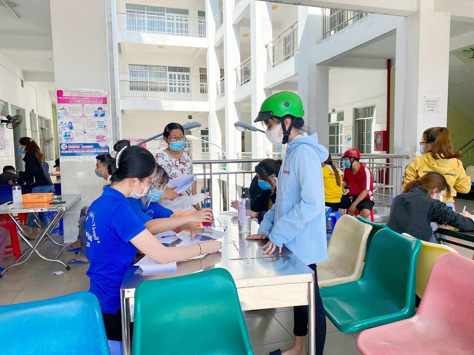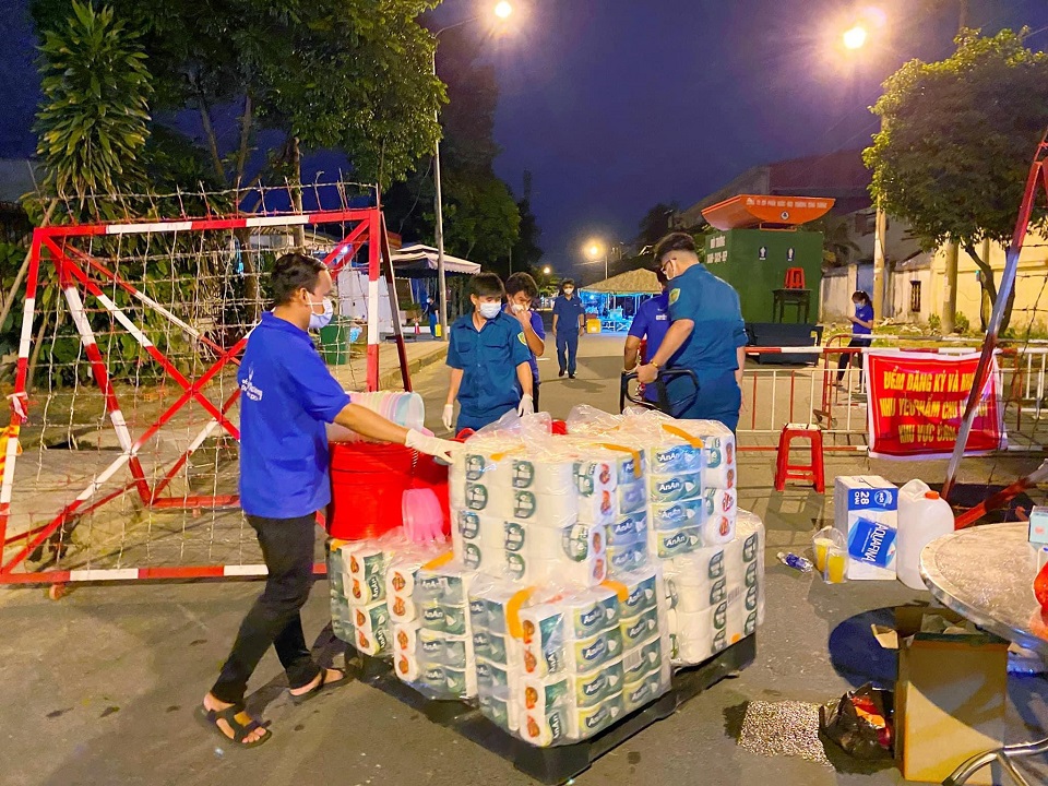 Đoàn viên Phường Bình Nhâm, thành phố Thuận An hỗ công tác hậu cần tại khu vực cách ly tập trung