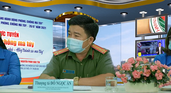 Chương trình livestream trực tuyến do Ban Thường vụ Tỉnh Đoàn tổ chức được phát sóng trực tiếp trên các trang mạng xã hội của Đoàn – Hội – Đội cấp tỉnh với sự tham gia của các khách mời: Đ/c Trần Thị Diễm Trinh – Phó Bí thư Tỉnh Đoàn, Chủ tịch Hội Sinh viên Việt Nam tỉnh Bình Dương; Thượng tá Đỗ Ngọc Ẩn - Trưởng phòng Cảnh sát Điều tra tội phạm về Ma túy, Công an tỉnh Bình Dương; Đ/c Nguyễn Phan Bảo Tín – Phó Bí thư Đoàn Phường, Chủ nhiệm CLB Thắp sáng niềm tin phường Lái Thiêu, thành phố Thuận An.
