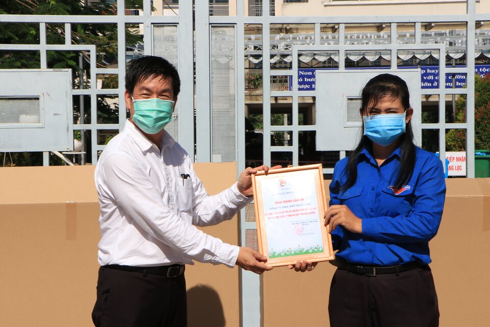 Tham dự Chương trình trao tặng có đồng chí Trần Thị Diễm Trinh - Phó Bí thư Tỉnh đoàn, Chủ tịch Hội Sinh viên Việt Nam tỉnh Bình Dương, Ông Sompob Witworrasakul - Tổng Giám đốc Công ty TNHH Giấy KRAFT VINA, đồng chí Nguyễn Minh Tâm - Bí thư Thành đoàn Thủ Dầu Một, đại diện cho đơn vị tiếp nhận.
