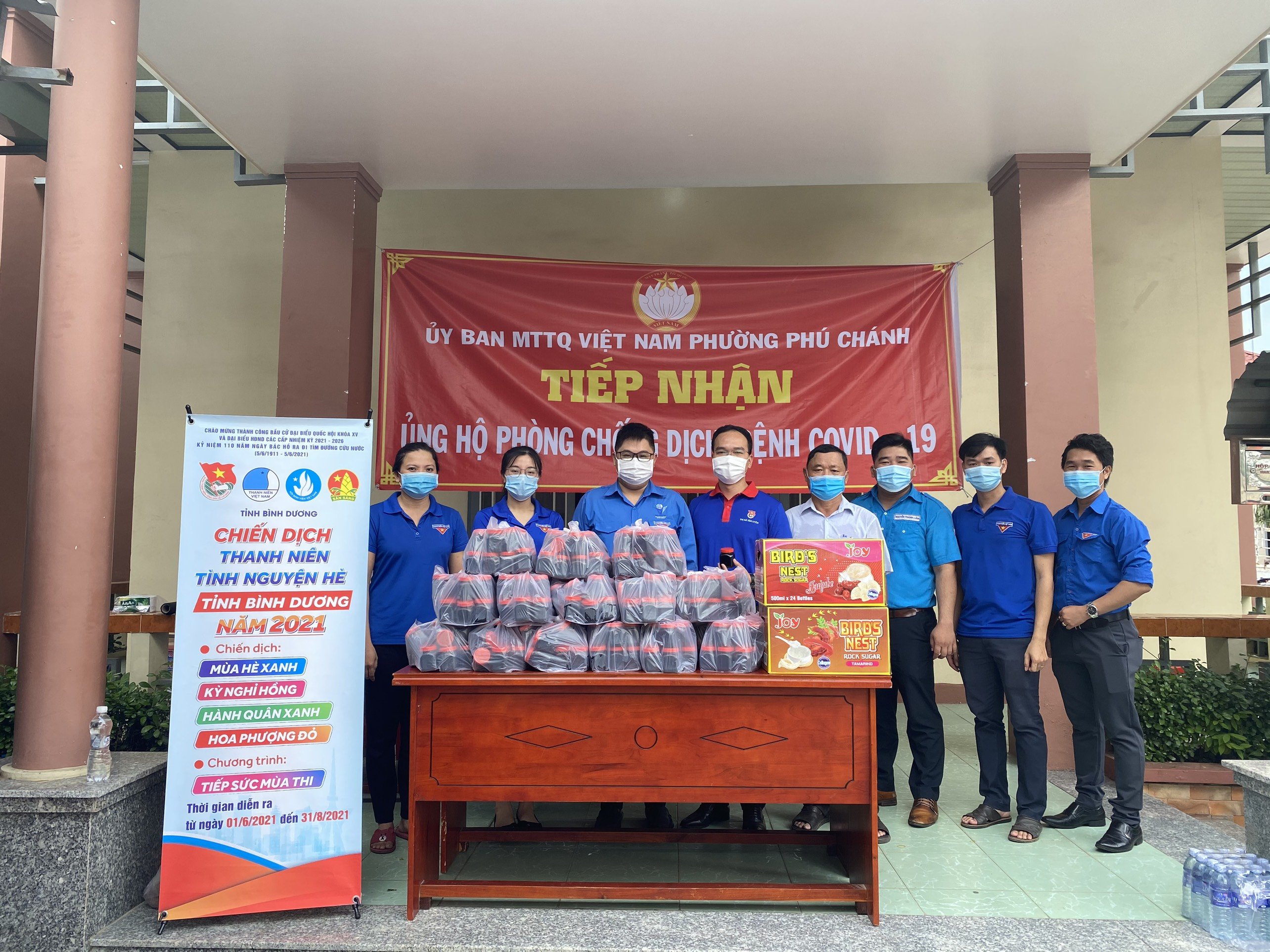 Tại đây, Đ/c Thái Kiến Thuận thay mặt Đoàn công tác đã trao các nhu yếu phẩm, nước uống cho thanh niên công nhân và lao động trẻ trong khu vực phong toả tại phường Định Hòa, thành phố Thủ Dầu Một và phường Phú Chánh, thị xã Tân Uyên. Đồng thời đoàn cũng ân cần thăm hỏi, động viên, khích lệ tinh thần của các đồng chí, cán bộ, chiến sĩ, tình nguyện viên tại chốt trực đã hỏi thăm, động viên tinh thần và tiếp thêm sức mạnh động lực cho các chiến sỹ, tình nguyện viên tại các chốt trực, khu vực phong tỏa tại 02 địa phương. Kết quả, Đoàn công tác đã tặng 1000 hủ kho quẹt và 50 thùng nước tại phường Định Hòa, Thành phố Thủ Dầu Một và phường Phú Chánh, thị xã Tân Uyên.