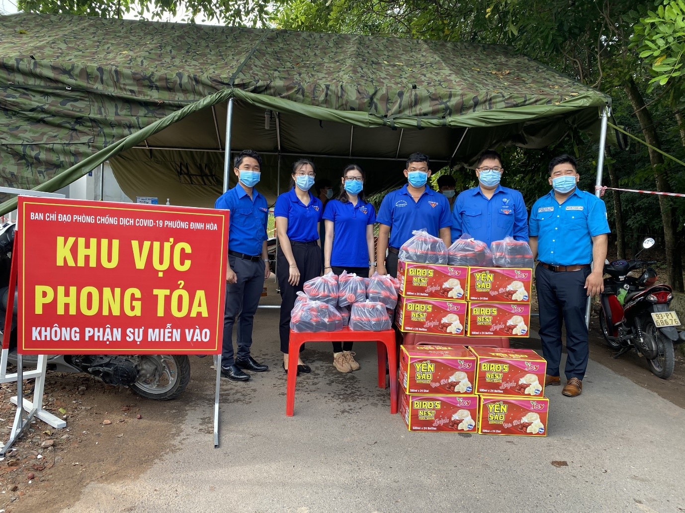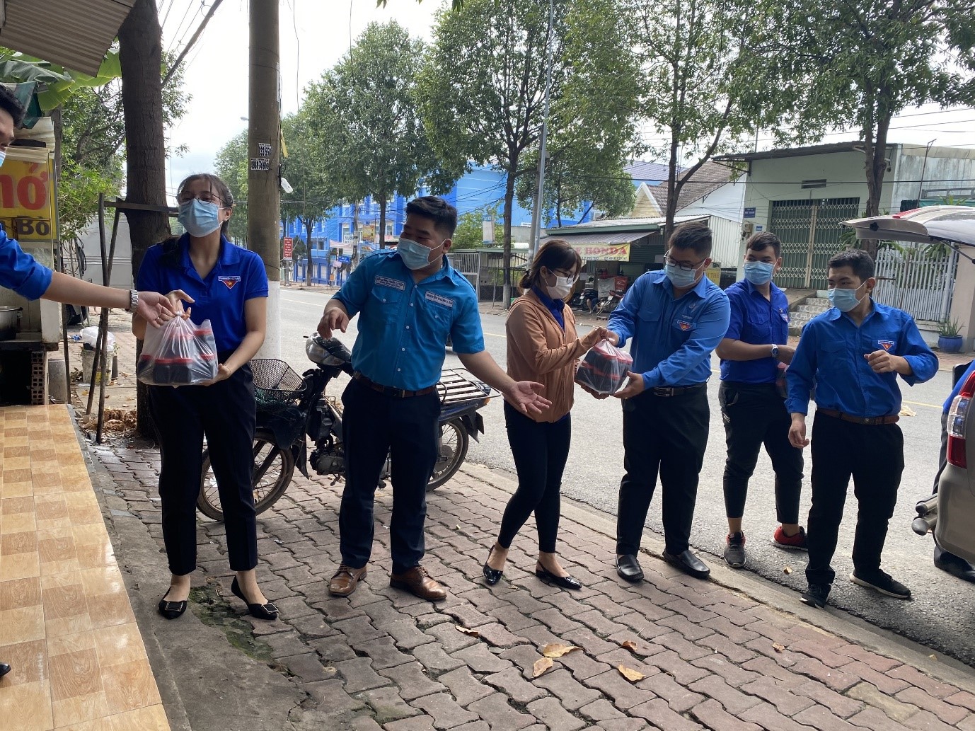 Đoàn Cơ sở Cơ quan Tỉnh đoàn phối hợp thăm và tặng quà ở các chốt cách ly trên địa bàn thị xã Tân Uyên và thành phố Thủ Dầu Một