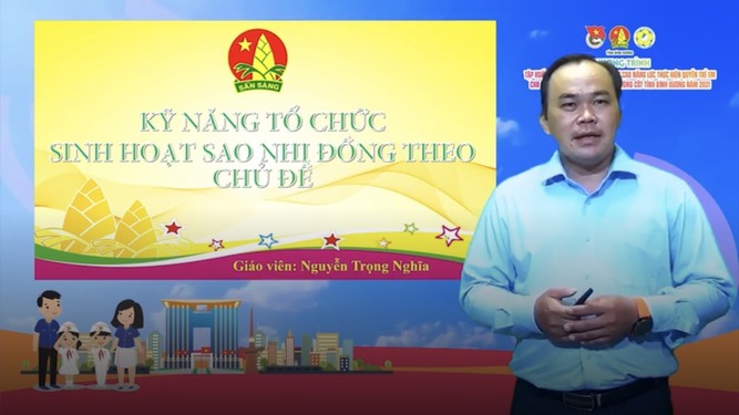 Thầy Nguyễn Trọng Nghĩa – Phó Hiệu trưởng Trường Đoàn Lý Tự Trọng chia sẻ với các em về Kỹ năng sinh hoạt sao nhi đồng theo chủ điểm từng tháng