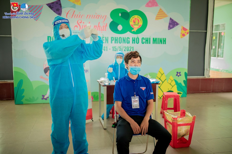 Thành viên Ban Chỉ huy Đội hình hướng dẫn tình nguyên viên lấy mẫu test nhanh Covid-19
