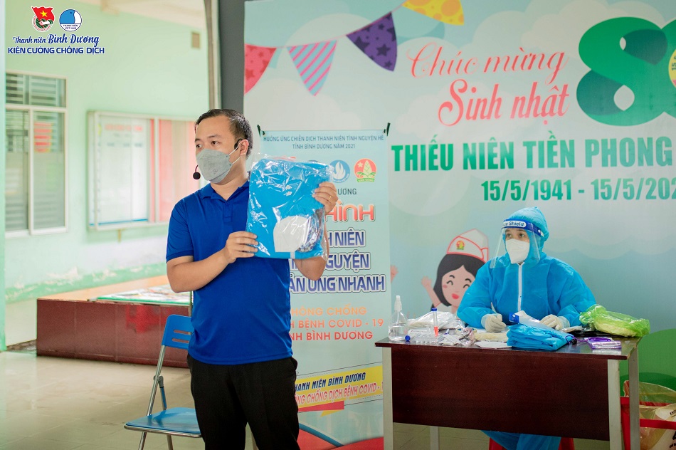 TTBD - Chiều ngày 27/7, Ban Thường vụ Tỉnh đoàn, Ban Thư ký Hội Liên hiệp Thanh niên Việt Nam Tỉnh, Ban Chỉ huy đội hình thanh niên tình nguyện phản ứng nhanh phòng, chống dịch bệnh Covid-19 tổ chức lớp tập huấn song song hai hình thức trực tiếp và trực tuyến tại các điểm cầu cho thành viên đội hình trong công tác phòng, chống dịch bệnh Covid-19 trên địa bàn tỉnh Bình Dương.