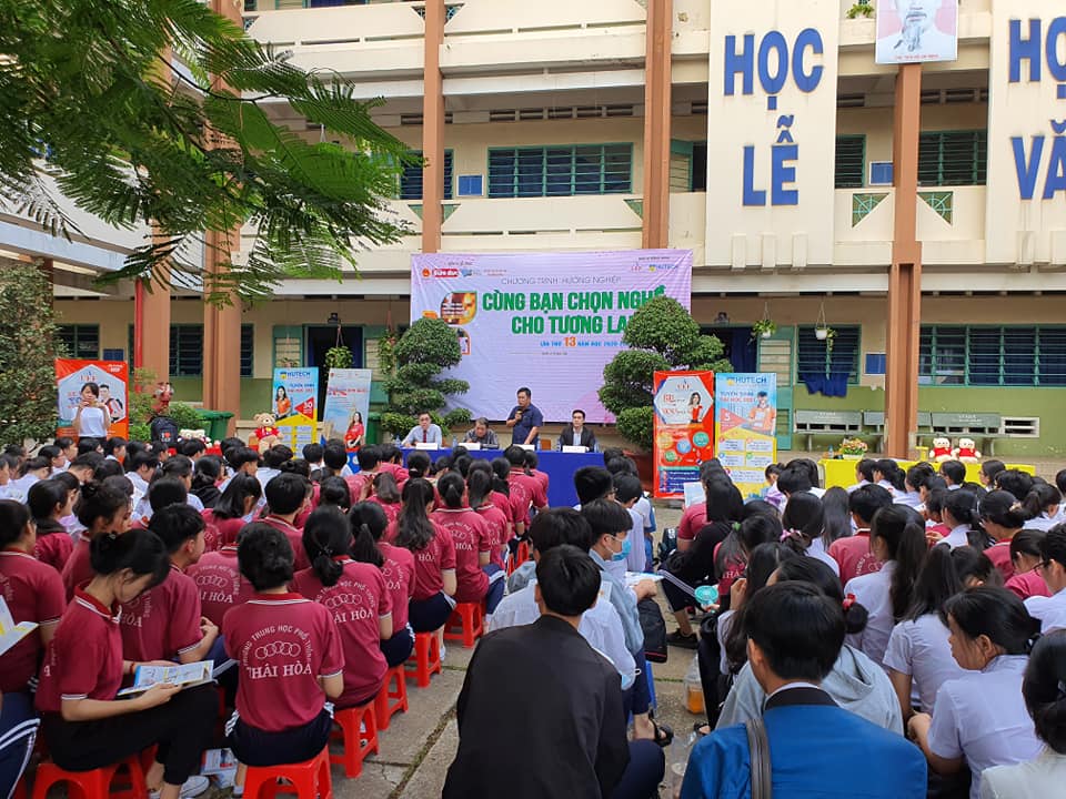 Học sinh trường THPT Thái Hòa, thị xã Tân Uyên được tư vấn hướng nghiệp tại trường