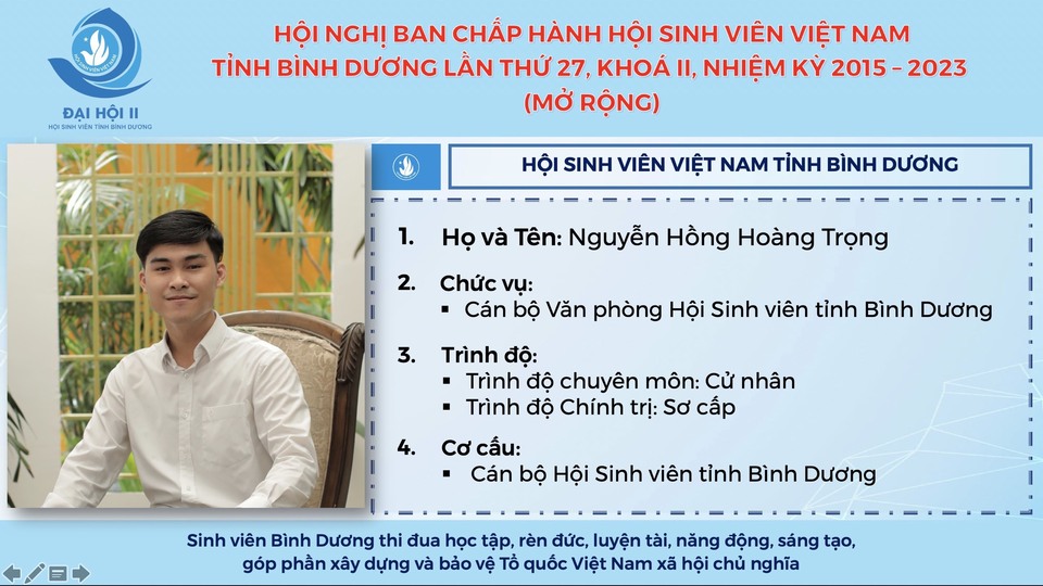 Hiệp thương các đồng chí vào Ban Thư ký, Ban Chấp hành, Ban Kiểm tra Hội Sinh viên Việt Nam tỉnh Bình Dương khoá II, nhiệm kỳ 2015 – 2023