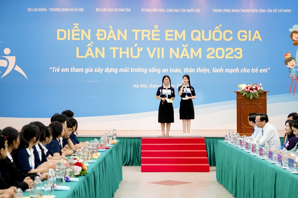 Bé Nguyễn Hà Bảo My - Gương đội viên tiêu biểu cháu ngoan Bác Hồ (bên phải)