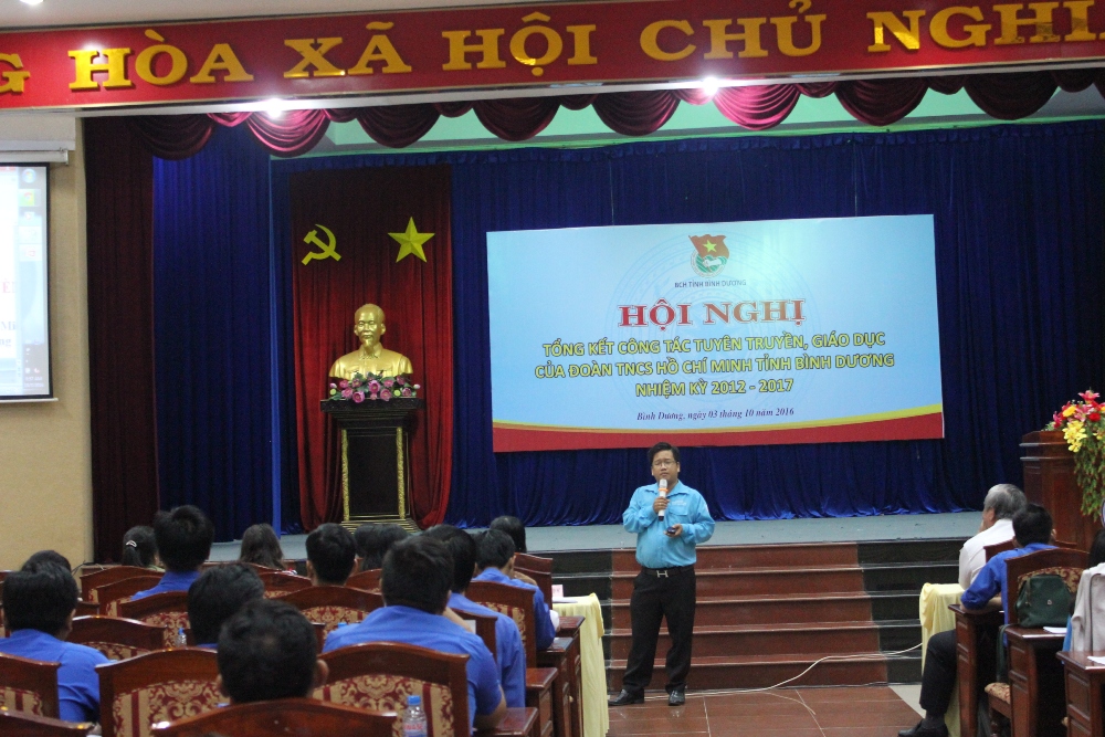 TTBD - Sáng ngày 3/10/2016, Ban Thường vụ Tỉnh Đoàn đã tổ chức hội nghị tổng kết công tác tuyên truyền, giáo dục của Đoàn TNCS Hồ Chí Minh tỉnh Bình Dương nhiệm kỳ 2012 – 2017 tại hội trường A - Ủy ban nhân dân thành phố Thủ Dầu Một.