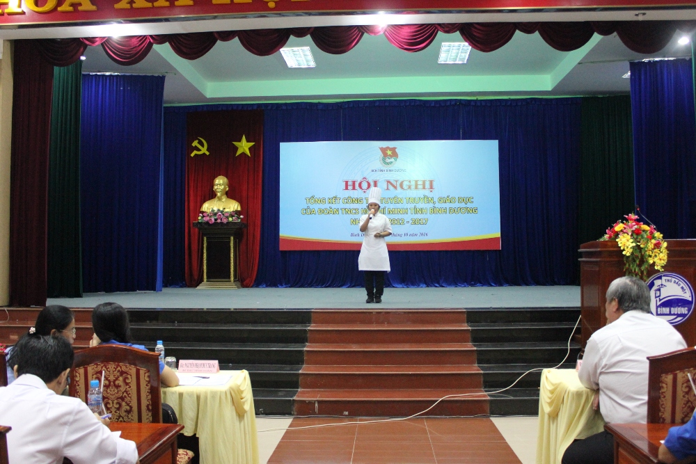 Tại Hội nghị, các đại biểu đã được nhìn lại các kết quả đạt được trong công tác tuyên truyền, giáo dục thông qua việc kể chuyện về tấm gương đạo đức và phong cách Hồ Chí Minh của em Nguyễn Minh Nguyệt – Đoàn viên trường THPT chuyên Hùng Vương, Tp.Thủ Dầu Một; qua việc báo cáo các mô hình, cách làm hiệu quả tại cơ sở của đồng chí Phạm Minh Hiếu – Bí thư Đoàn phường Đông Hòa, thị xã Dĩ An, qua việc báo cáo chuyên đề về Xây dựng hình mẫu thanh niên thời kỳ mời của Đ/c Nguyễn Trần Nhật Khánh – Bí thư chi đoàn phòng văn hóa, thông tin thị xã Thuận An, là thí sinh đạt giải Nhất hội thi báo cáo viên giỏi tỉnh Bình Dương năm 2016, qua phần trình bày giới thiệu mô hình giáo dục kỹ năng sống cho thanh thiếu nhi với chủ đề “Teen năng động – học điều hay” của Nhà thiếu nhi và Đoàn thanh niên công an tỉnh.