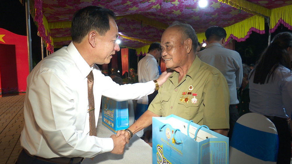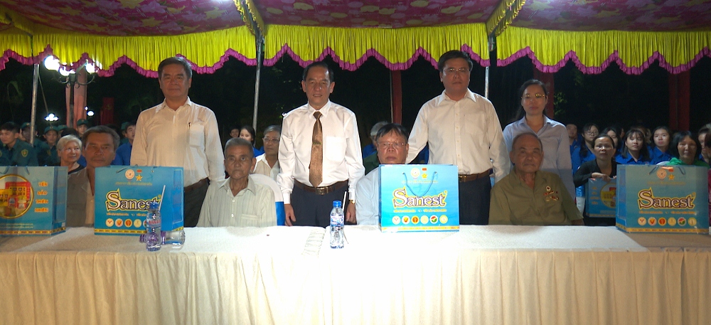 Lãnh đạo Thị xã trao quà cho cho các gia đình chính sách, gia đình có công với cách mạng về tham dự lễ