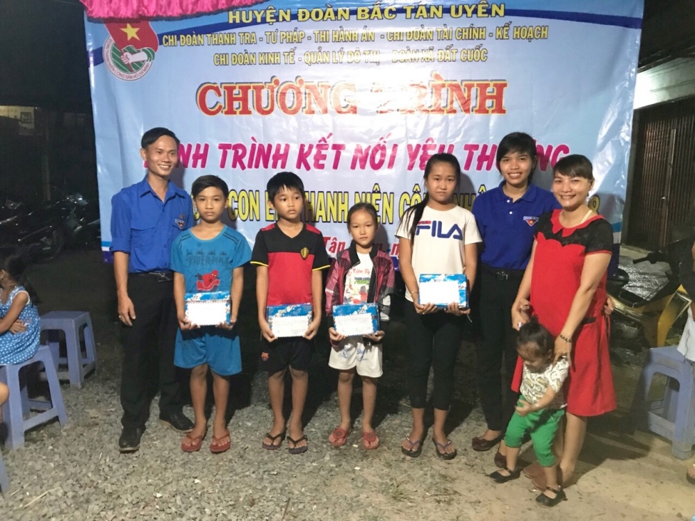 TTBD- Nhằm khuyến khích và động viên con em thanh niên công nhân có hoàn cảnh khó khăn, phấn đấu trong học tập và rèn luyện bản thân trở thành con ngoan trò giỏi của gia đình, nhà trường và xã hội. Ngày 29/7/2018, BCH Chi đoàn Khối cơ quan huyện Bắc Tân Uyên phối hợp BCH Xã đoàn Đất Cuốc tổ chức chương trình hành trình kết nối yêu thương tại nhà trọ cô Nguyễn Thị Việt.
