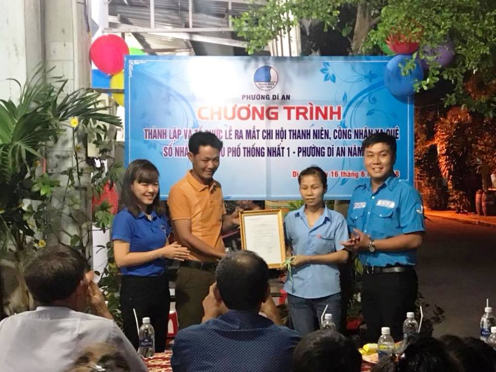 Trong tháng 6 và tháng 7, BCĐ Đề án “Đoàn kết tập hợp thanh niên công nhân” phường Dĩ An, thị xã Dĩ An đã thành lập và tổ chức Lễ ra mắt các chi hội TNCN xa quê tại khu nhà trọ 22/11 khu phố Thống Nhất 1, 16/6 khu phố Thắng Lợi 1, 33/1 khu phố Thống Nhất 2 - phường Dĩ An.