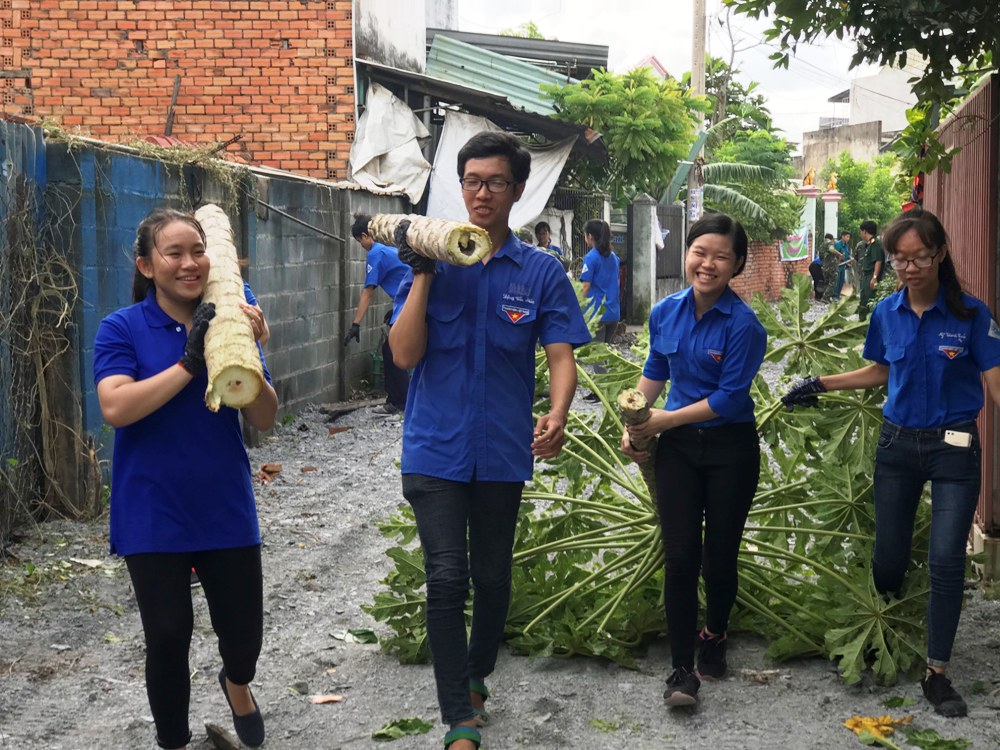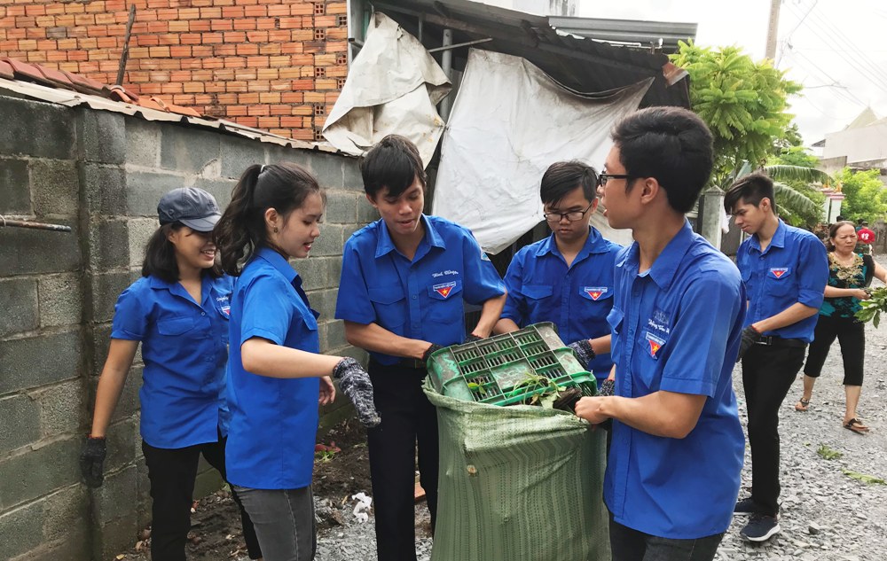 Đoàn viên, thanh niên tham gia dọn dẹp làm sạch cảnh quang tuyến đường
