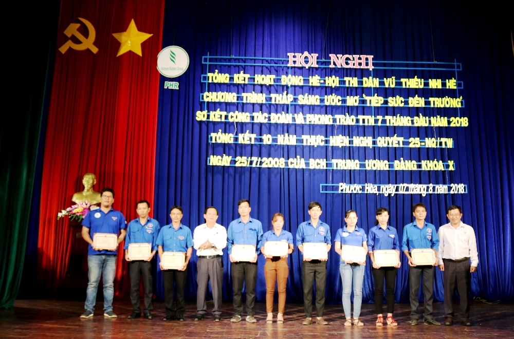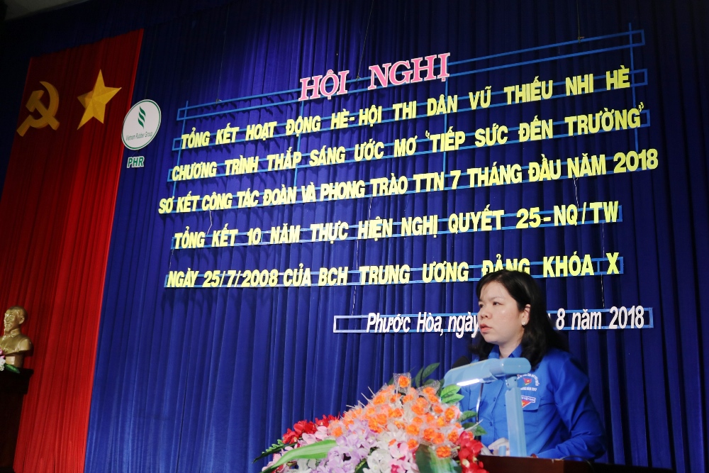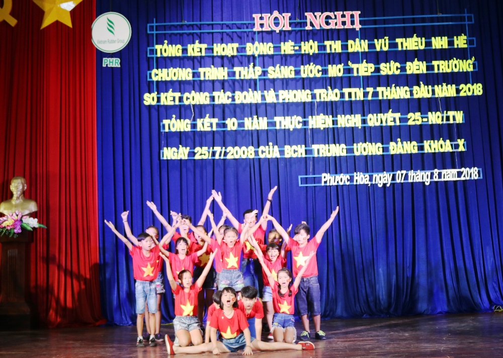 TTBD- Sáng ngày 07/8/2018, tại Hội trường TTVH Công ty, Đoàn TN Công ty CPCS Phước Hòa (PHR) đã tổ chức Tổng kết 10 thực hiện nghị quyết 25-NQ/TW của BCH TW Đảng khóa X, Hội nghị sơ kết công tác Đoàn và phong trào TTN 7 tháng đầu năm 2018 và Hội thi “Dân vũ thiếu nhi”, Chương trình “Thắp sáng ước mơ”.