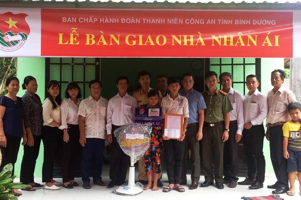 TTBD – Vừa qua, Đoàn Thanh niên Công an tỉnh phối hợp với UBND xã Thanh Tuyền, huyện Dầu Tiếng, tỉnh Bình Dương tổ chức trao tặng nhà nhân ái cho gia đình ông Vương Hoàng Thao, sinh năm 1963, ngụ tại: ấp Gò Mối, xã Thanh Tuyền.